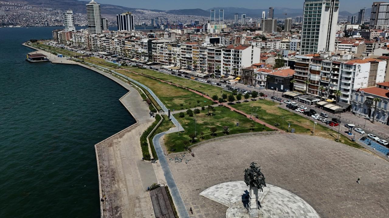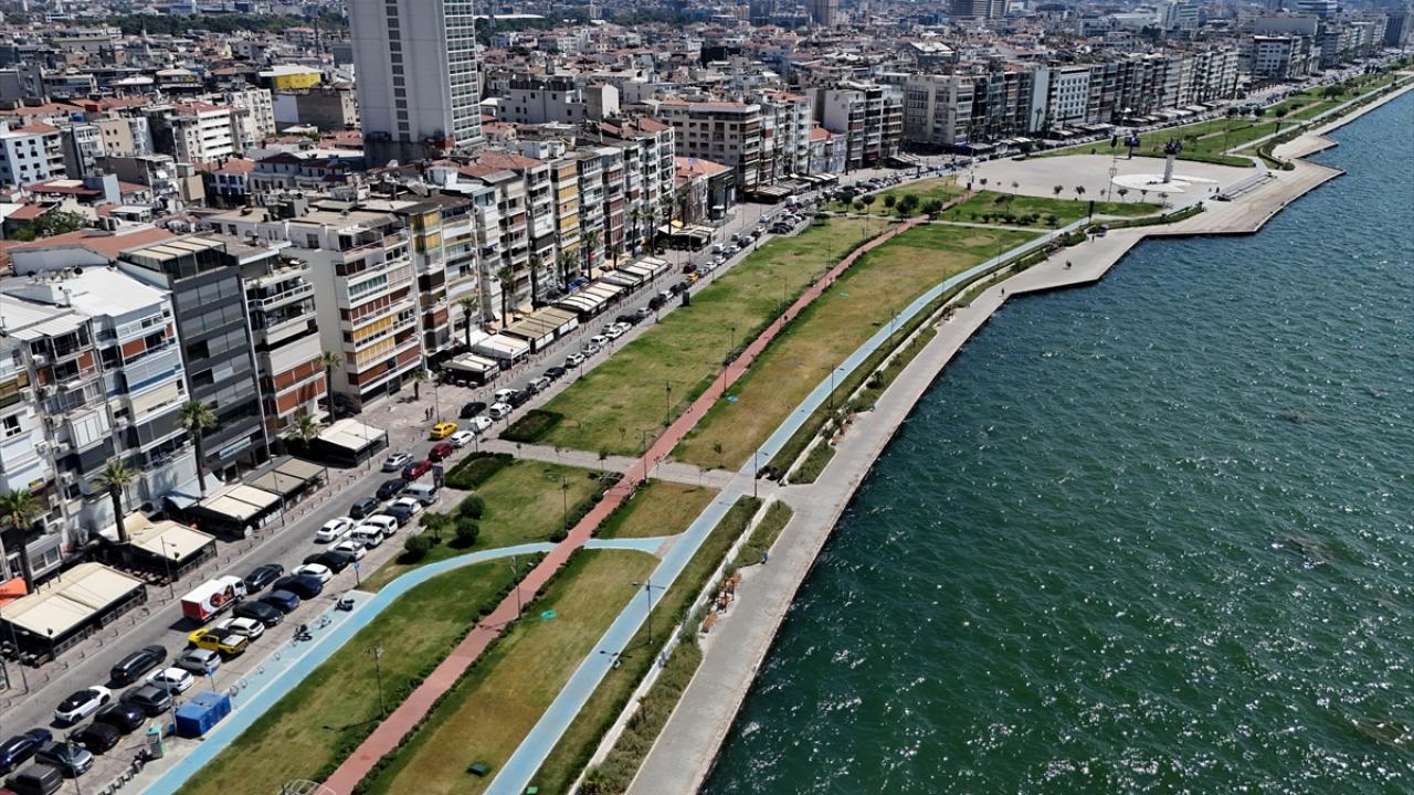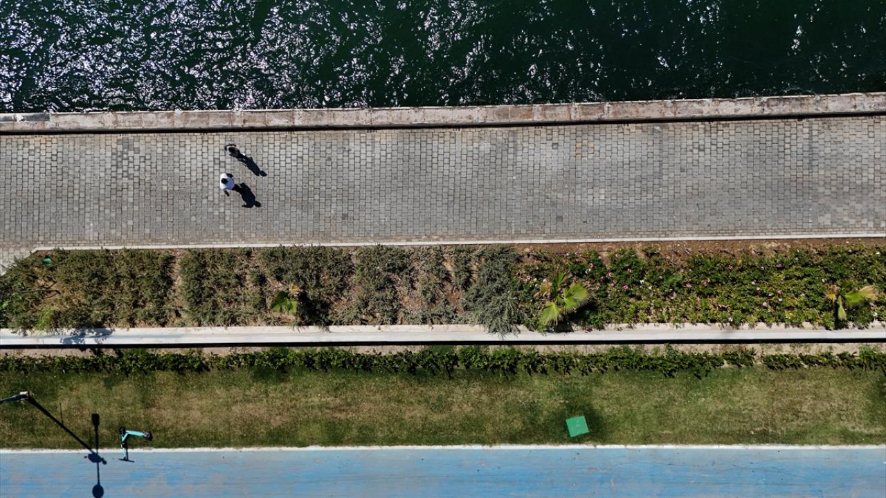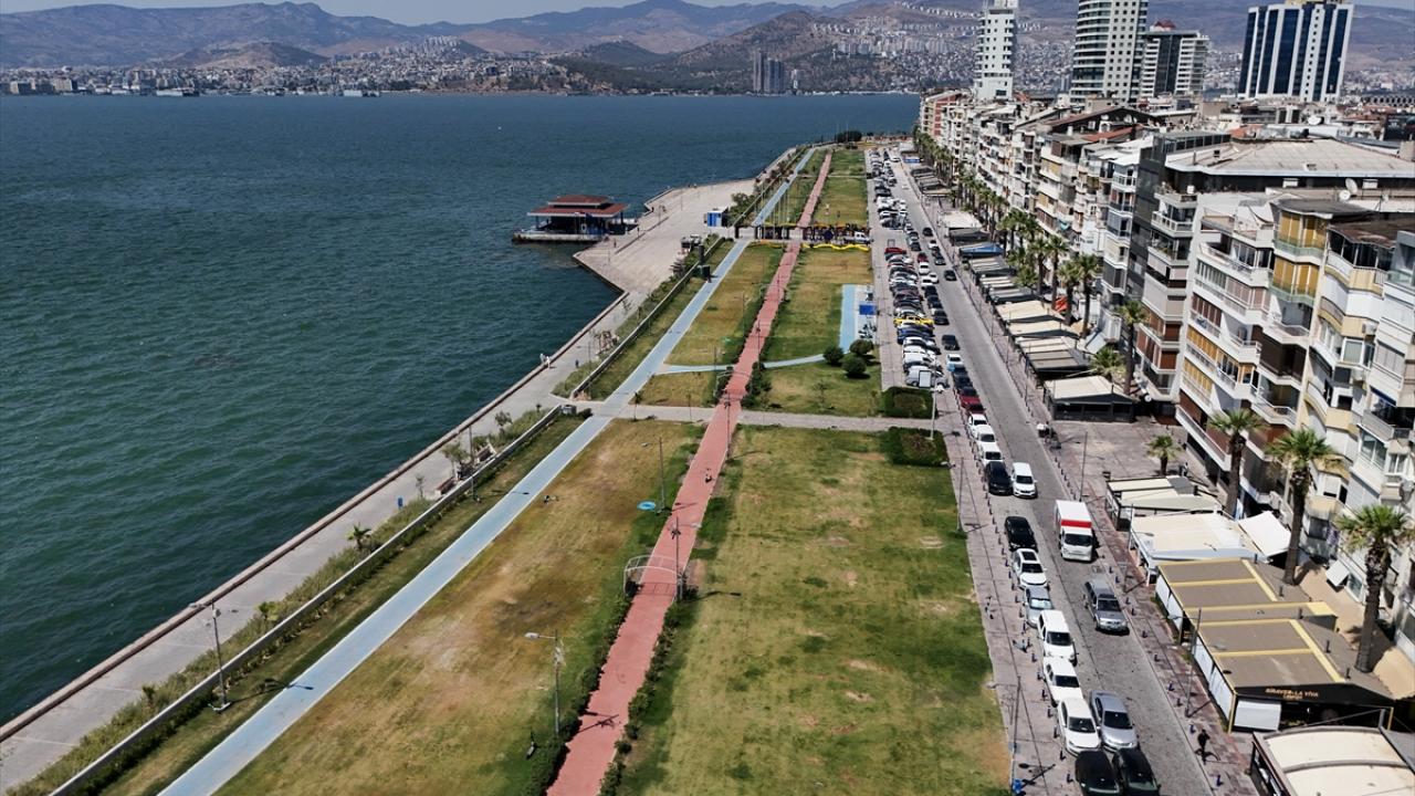 Termometrelerin 42 dereceyi gösterdiği İzmir'de, sıcak hava nedeniyle sahil şeridi boş kaldı.