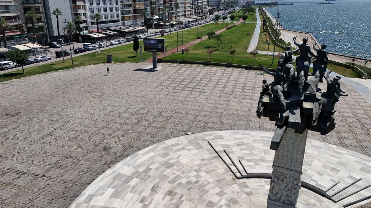Konak ilçesindeki Kordon boyunda da insan yoğunluğunun azaldığı gözlemlendi.
