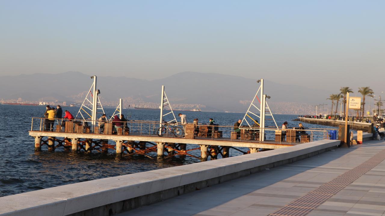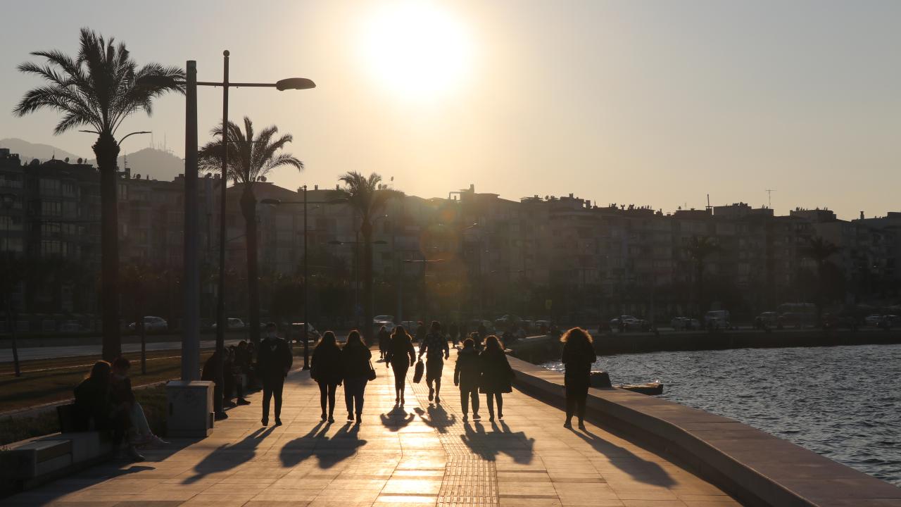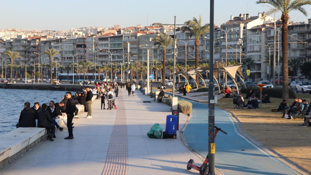 Hava sıcaklıklarının mevsim normallerinin üzerinde seyrettiği İzmir'de vatandaşlar sahil kesiminde yoğunluk oluşturdu. Sahil kenarındaki yeşil alanlara oturan vatandaşların maske ve sosyal mesafe kurallarına uydukları gözlendi.