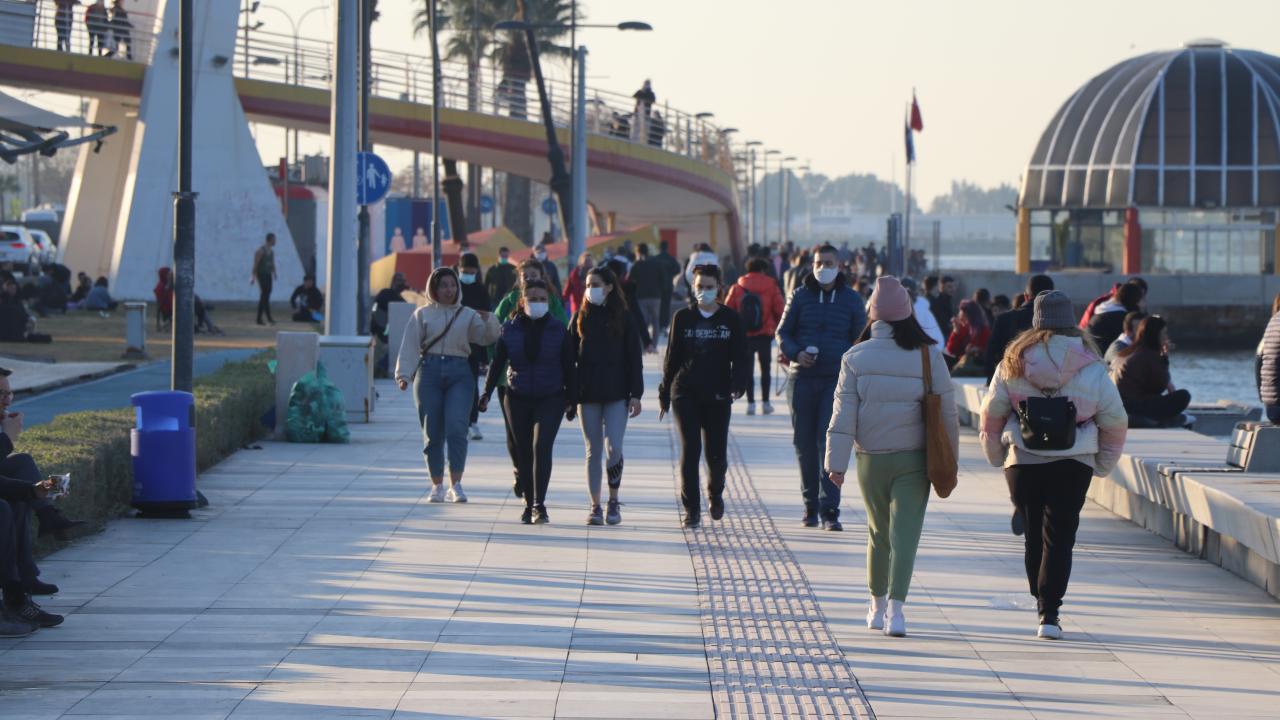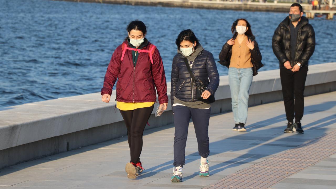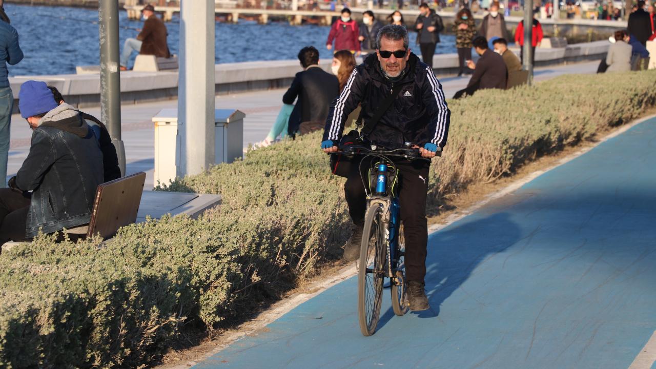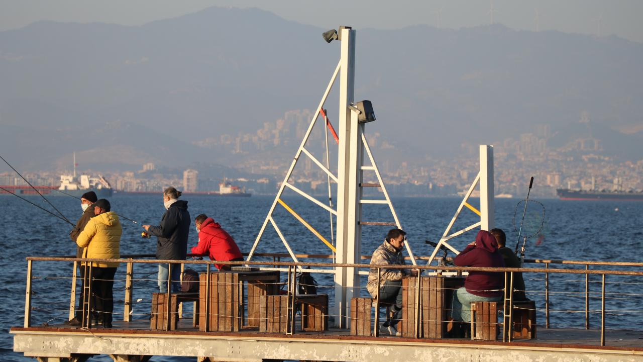 Hava sıcaklıklarının mevsim normallerinin üzerinde seyrettiği İzmir'de vatandaşlar sahil kesiminde yoğunluk oluşturdu. Sahil kenarındaki yeşil alanlara oturan vatandaşların maske ve sosyal mesafe kurallarına uydukları gözlendi.
