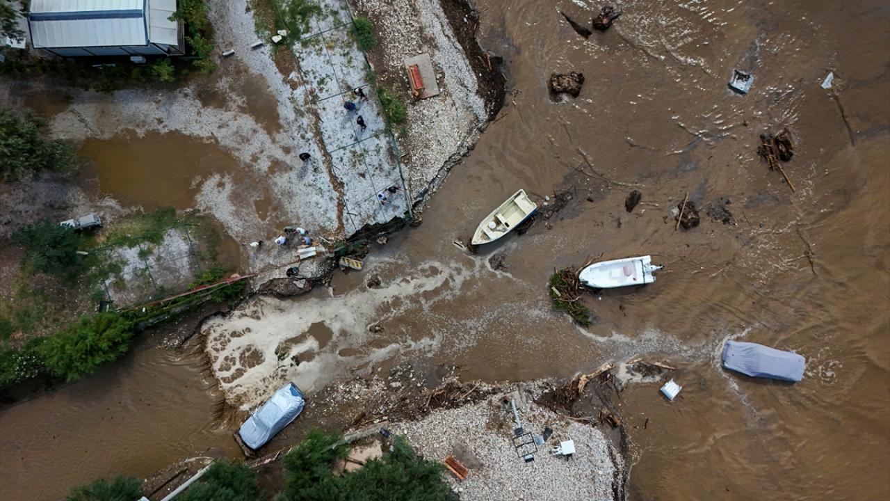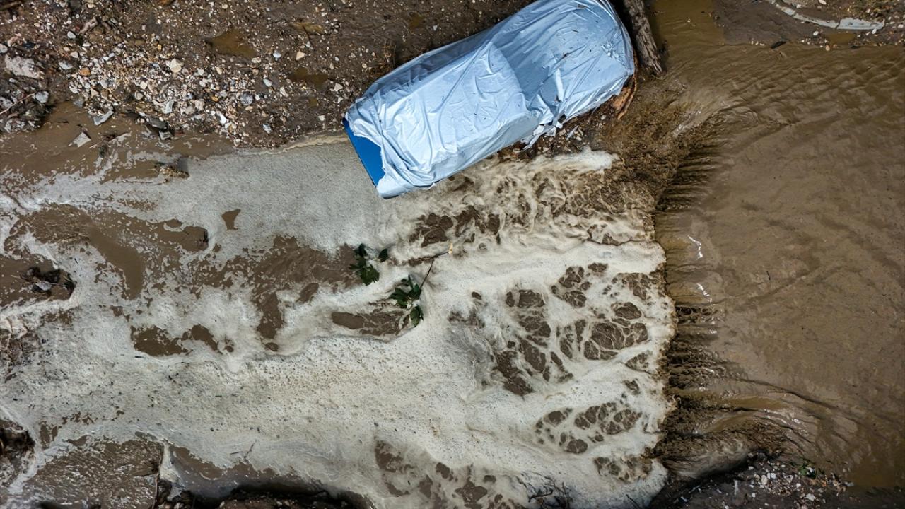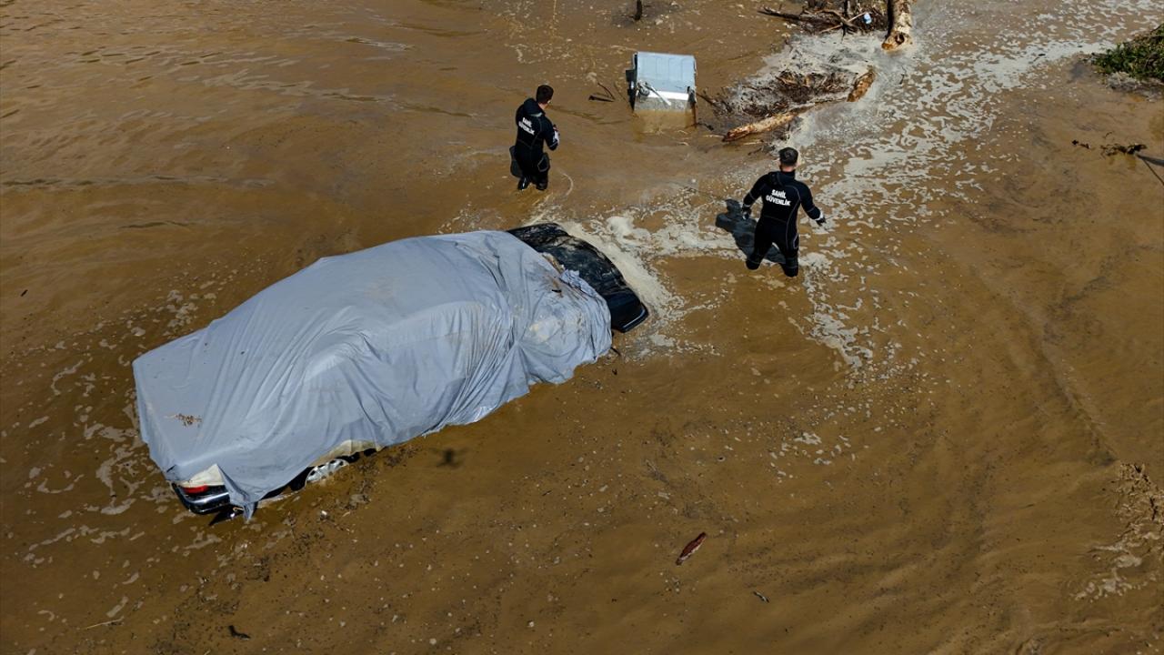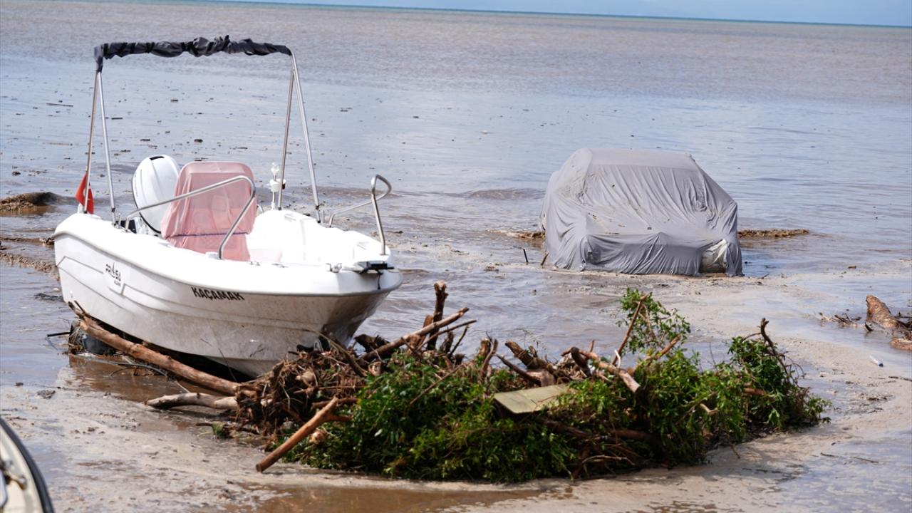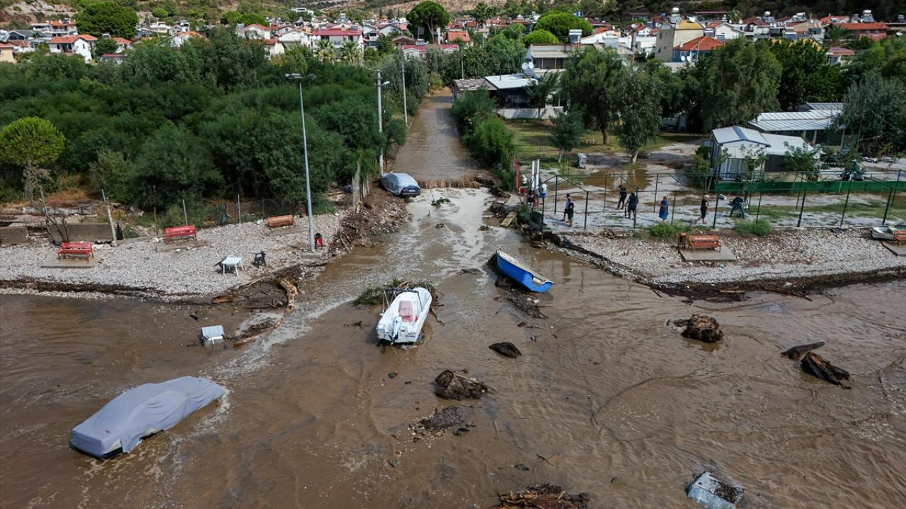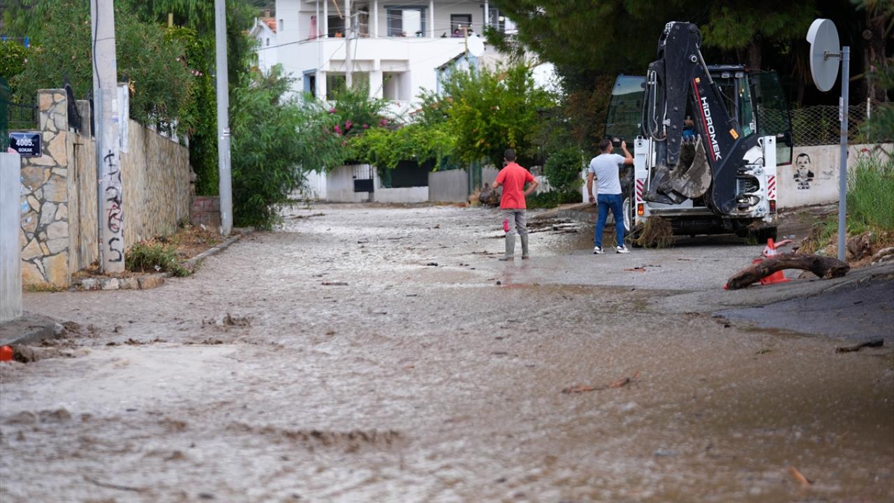 Menderes ilçesindeki Ahmetbeyli Mahallesi Maydonoz Koyu`nda şiddetli yağış sonrası bazı ev ve iş yerlerini su bastı, araçlar mahsur kaldı.
