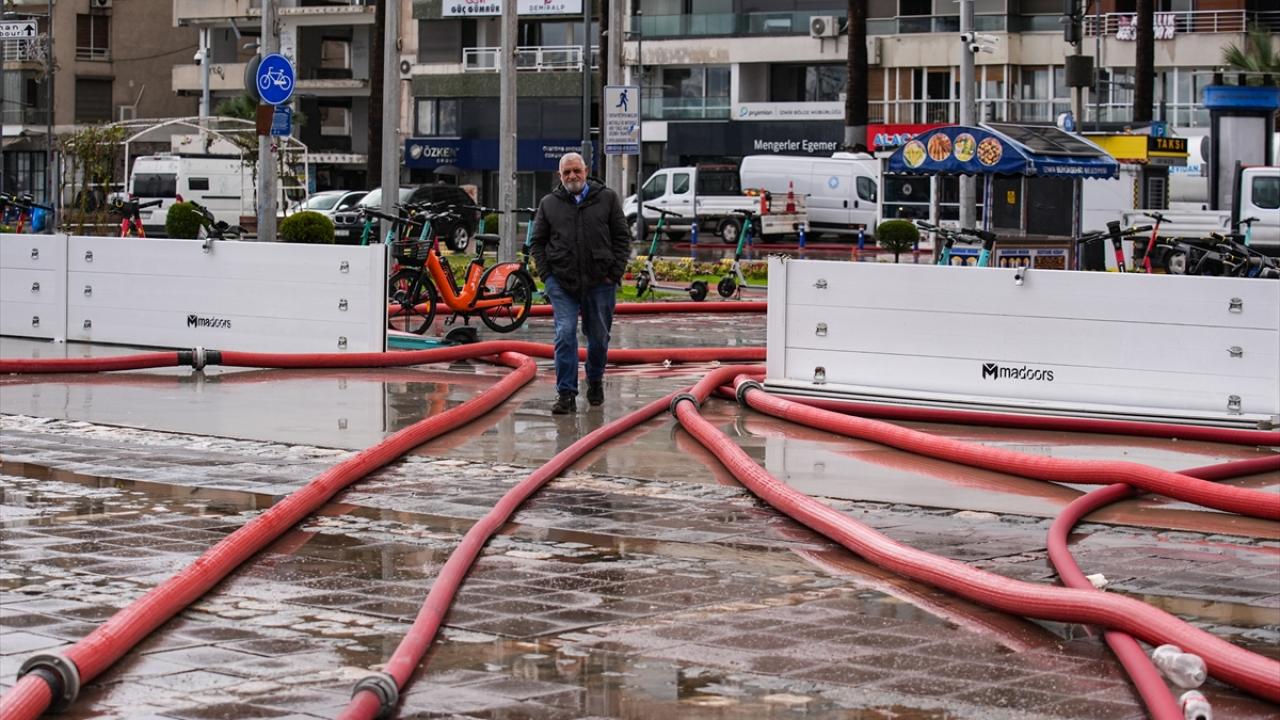 Kentte gece boyunca aralıklarla etkisini gösteren yağış, Konak ilçesindeki Kıbrıs Şehitleri Caddesi ve çevresi ile Kordon`da, dükkan ve apartmanların girişlerinin suyla dolmasına, çok sayıda iş yeri ile bazı binaların zemin katlarında su baskınına yol açtı.