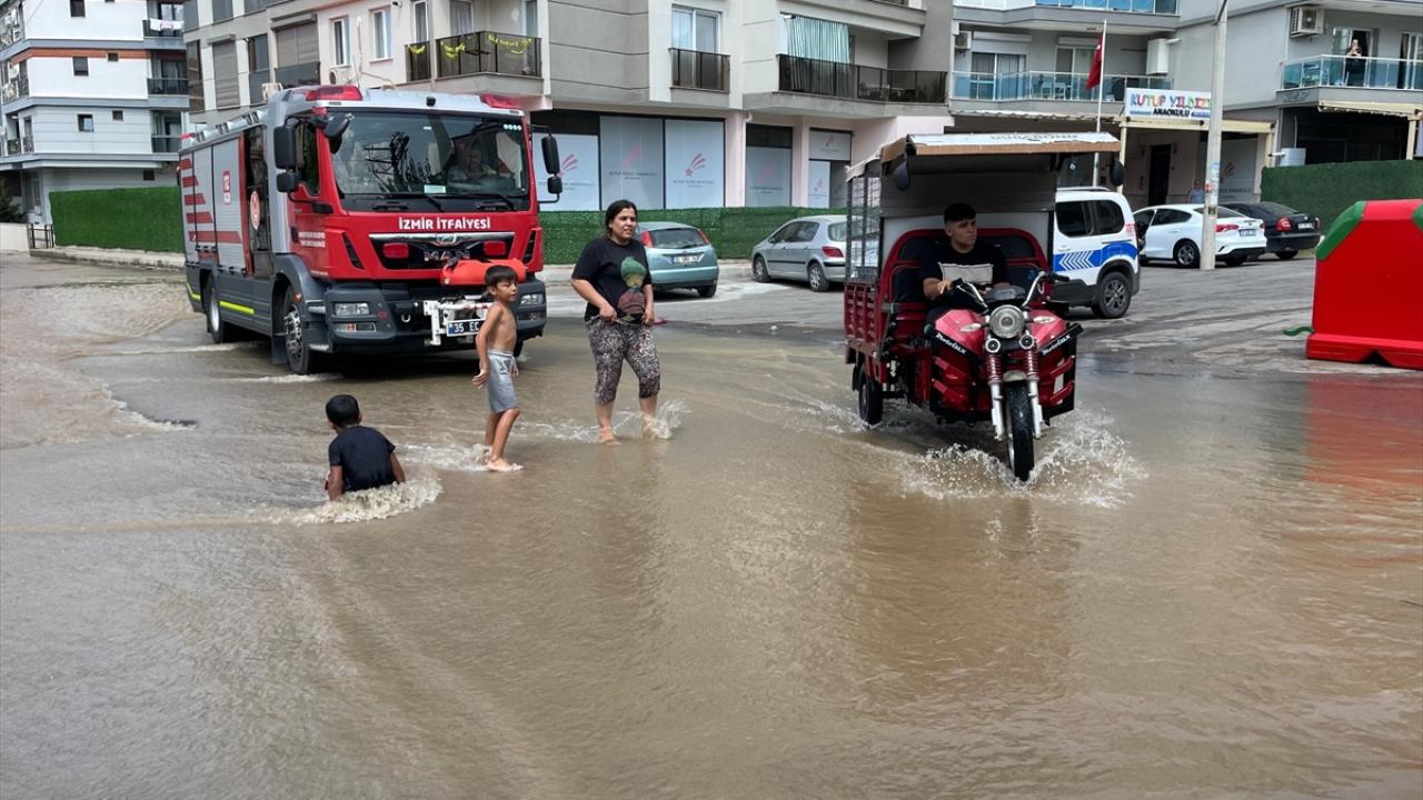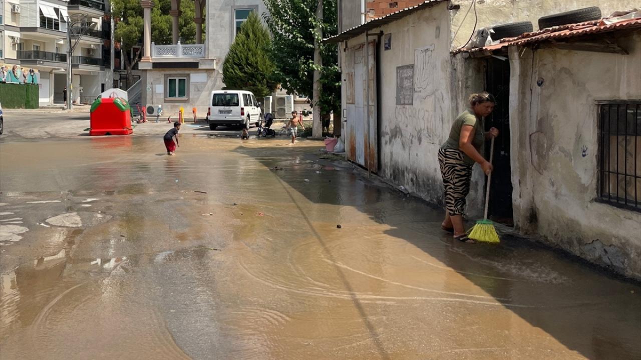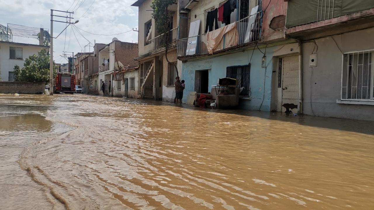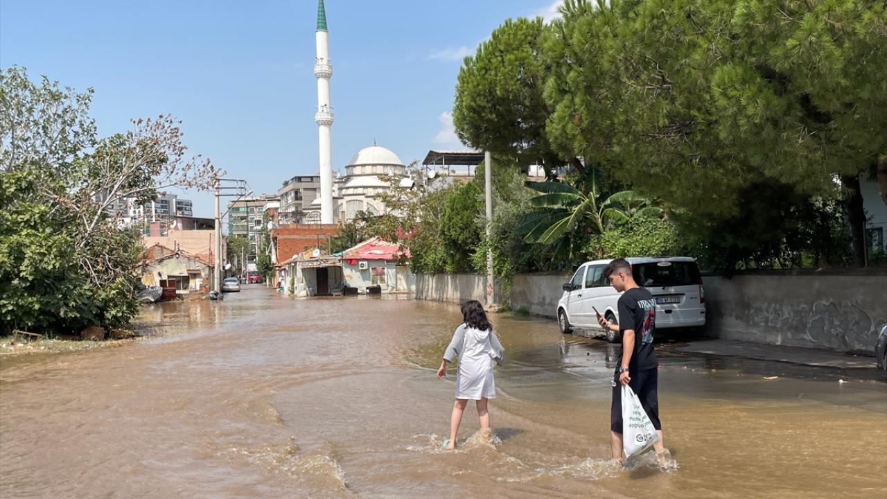 İzmir'in Karşıyaka ilçesinde bir inşaat alanında çalışma yapan iş makinesinin ana su borusunu patlatması sonucu, bazı ev ve iş yerlerini su bastı. Mahalledeki çocuklar da su birikintilerine girip oynadı.
