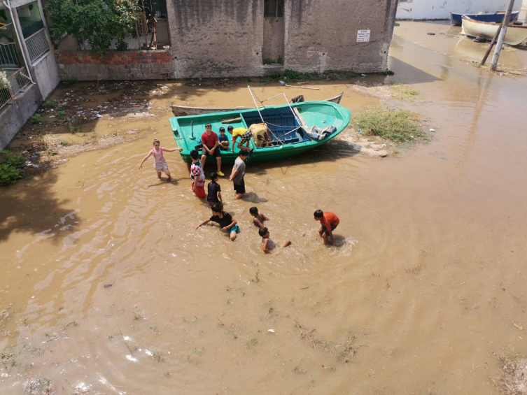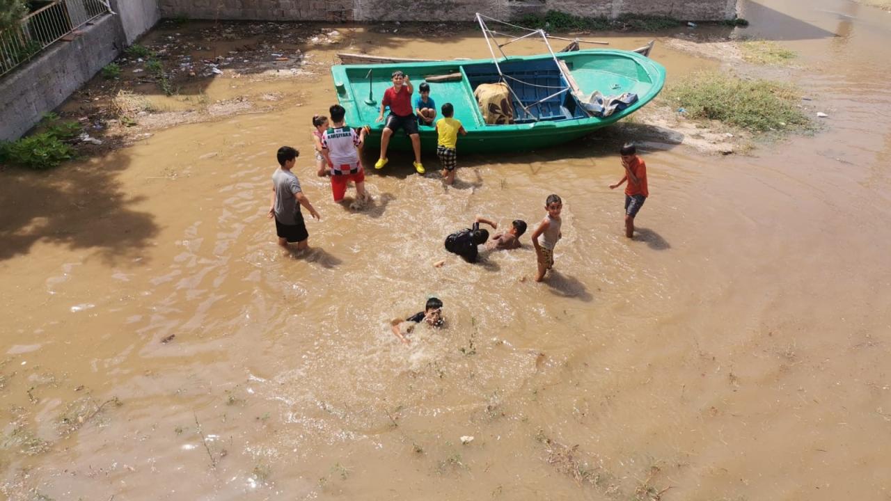 Öte yandan mahalledeki bazı çocukların su birikintilerine girip oynadıkları gözlendi.
