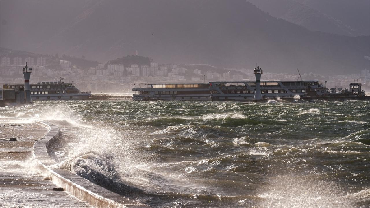 İZDENİZ`den yapılan açıklamada, "İlimizi etkileyen olumsuz hava ve deniz koşullarının devam etmesi nedeniyle yolcu gemisi ve arabalı feribot seferlerimiz, saat 09.55 itibarıyla iptal edilmiştir." ifadeleri kullanıldı.