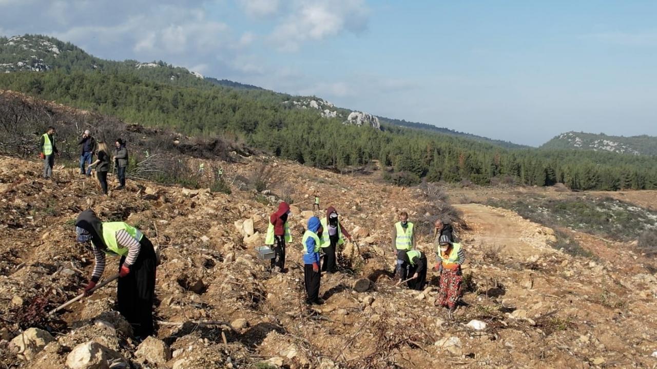 İzmir'in Menderes ilçesindeki Çile ve Urla ilçesindeki Balıklıova mahallelerinde çıkan orman yangınları sonrası başlatılan ağaçlandırma çalışmaları aralıksız devam ediyor.