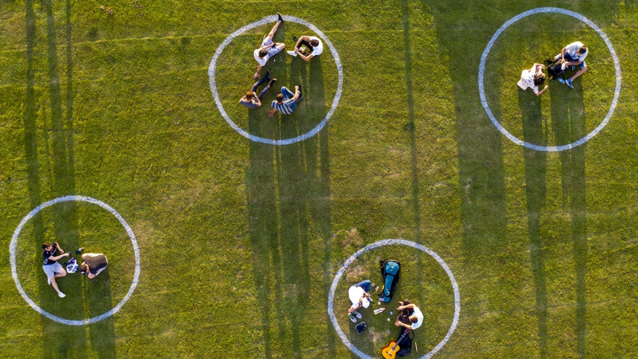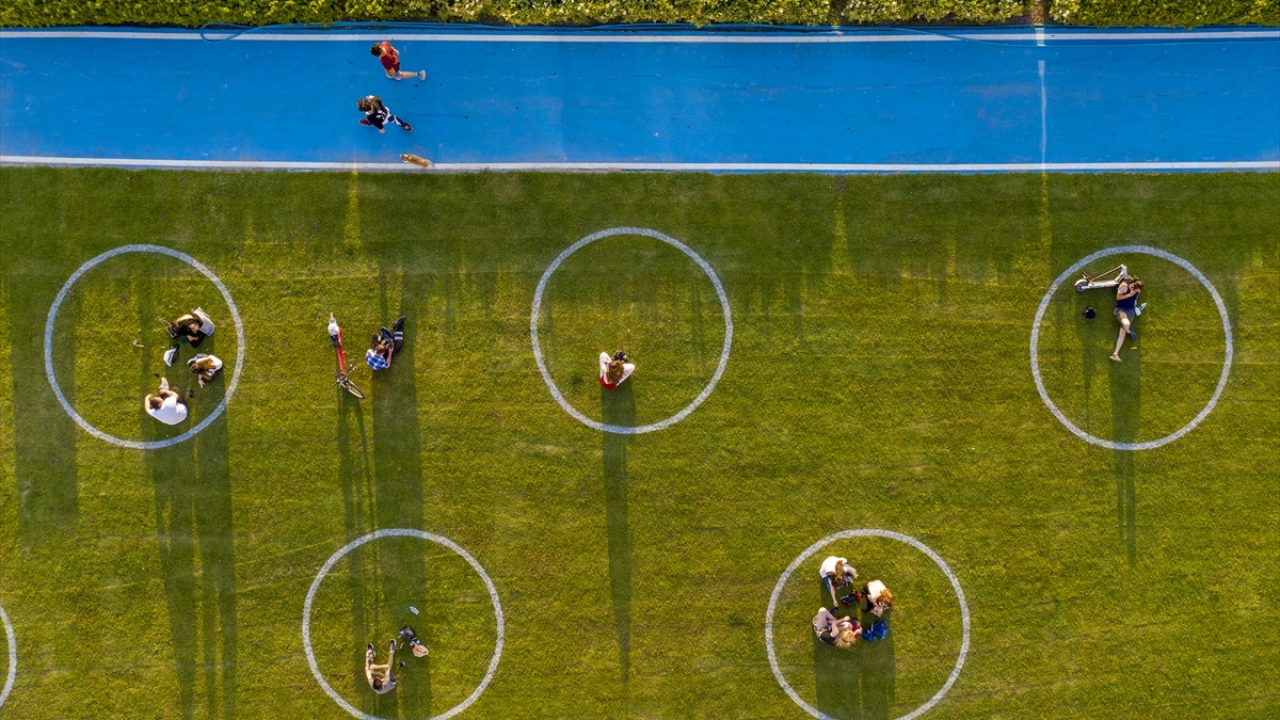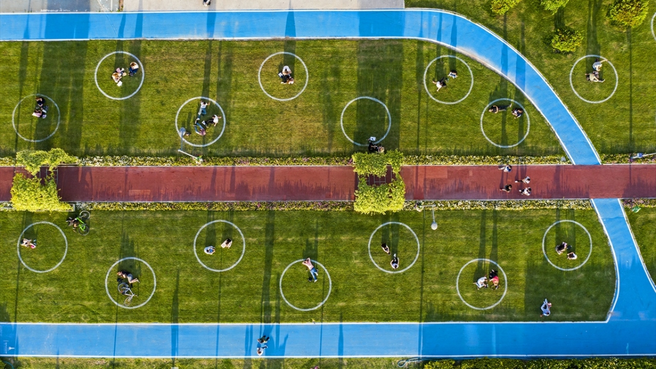 Bu kapsamda bölgeye gelen vatandaşlar, sosyal mesafe kuralına uygun olarak söz konusu çemberlerde oturmayı tercih etti.