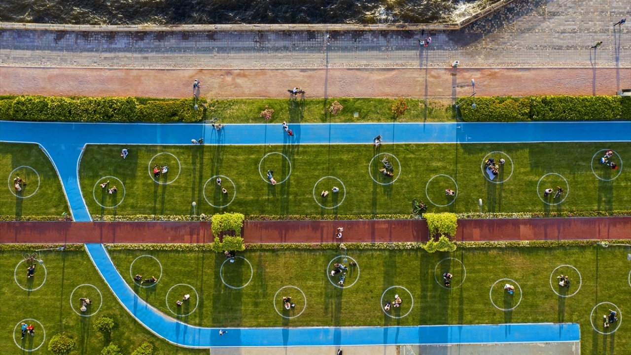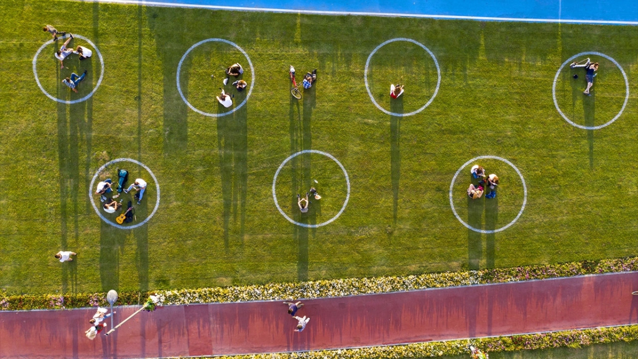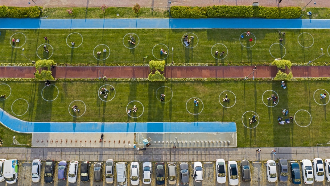 İzmir'de yeşil alanlarda 'çemberli sosyal mesafe' dönemi