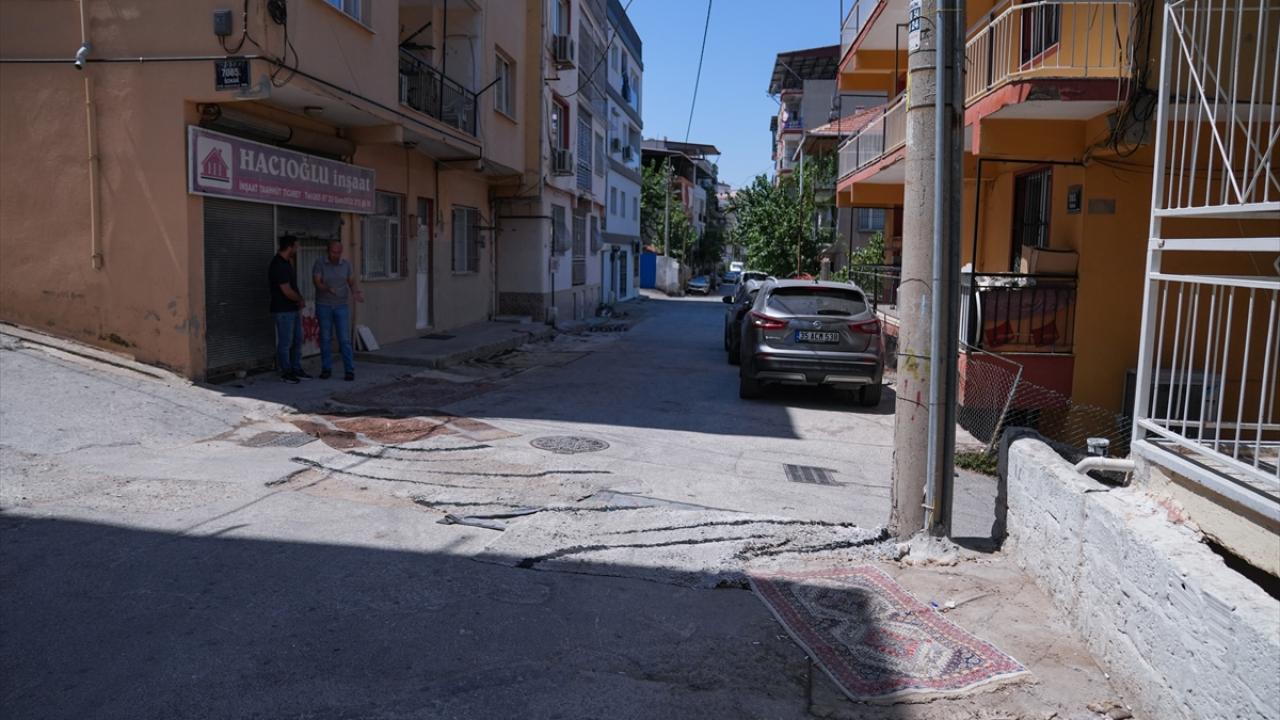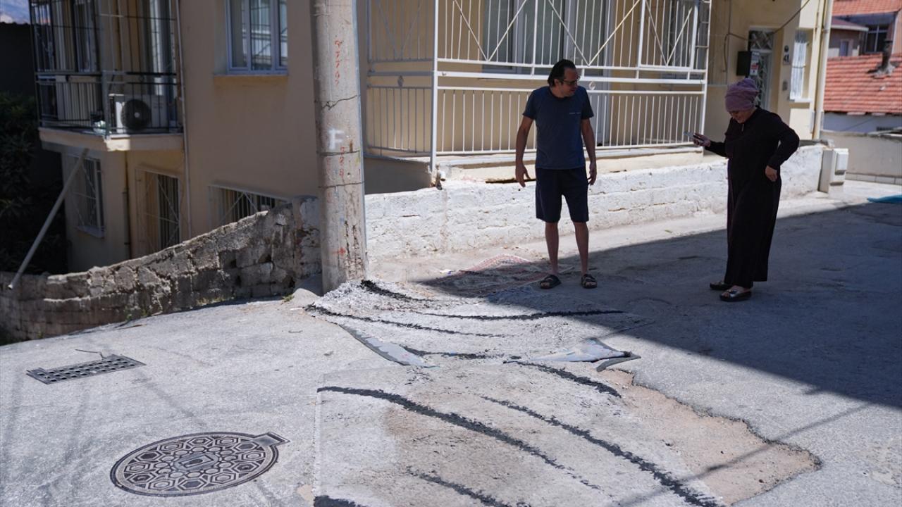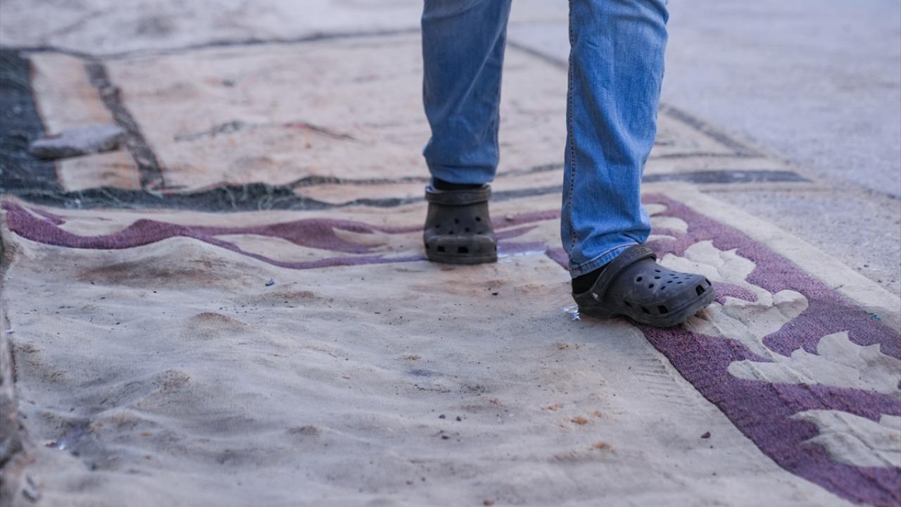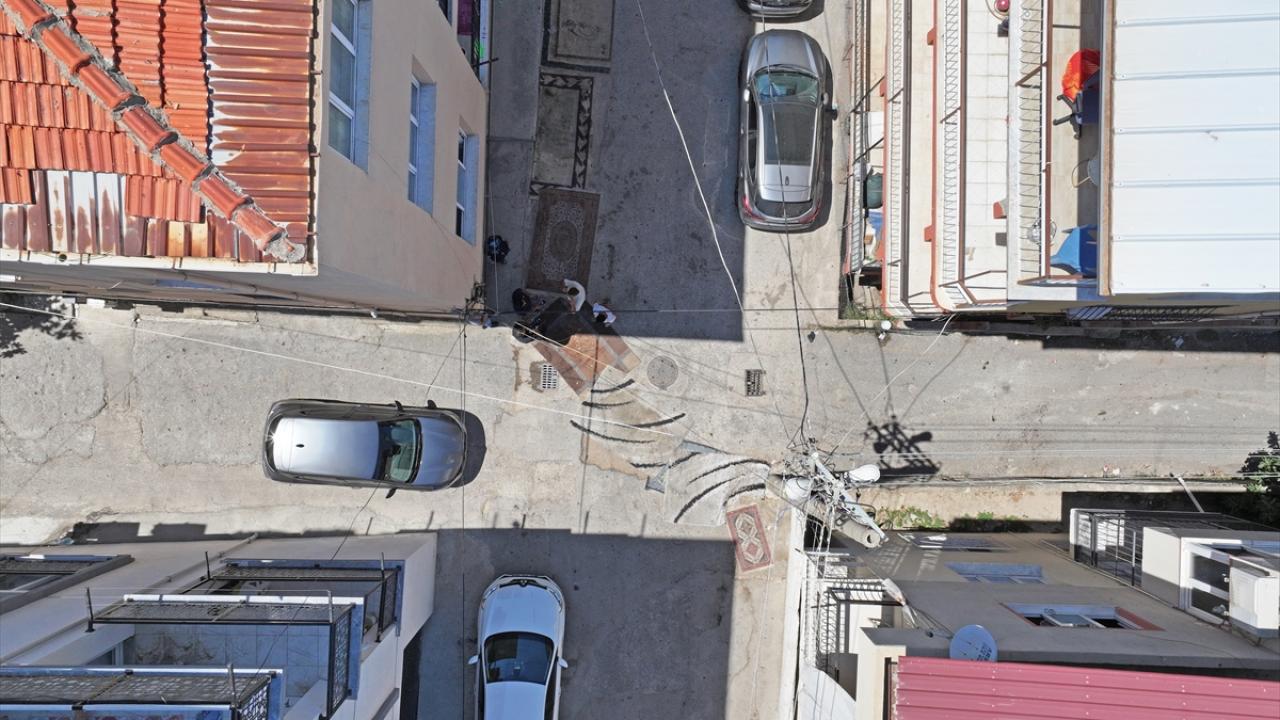 İzmir'in Bayraklı ilçesinde, altyapı çalışmaları için kazılan yolda gerekli çalışma yapılmadığı için tozdan etkilenen ve araçları zarar gören mahalle sakinleri, önlem amacıyla evlerindeki halıları kazı yapılan sokağa serdi.