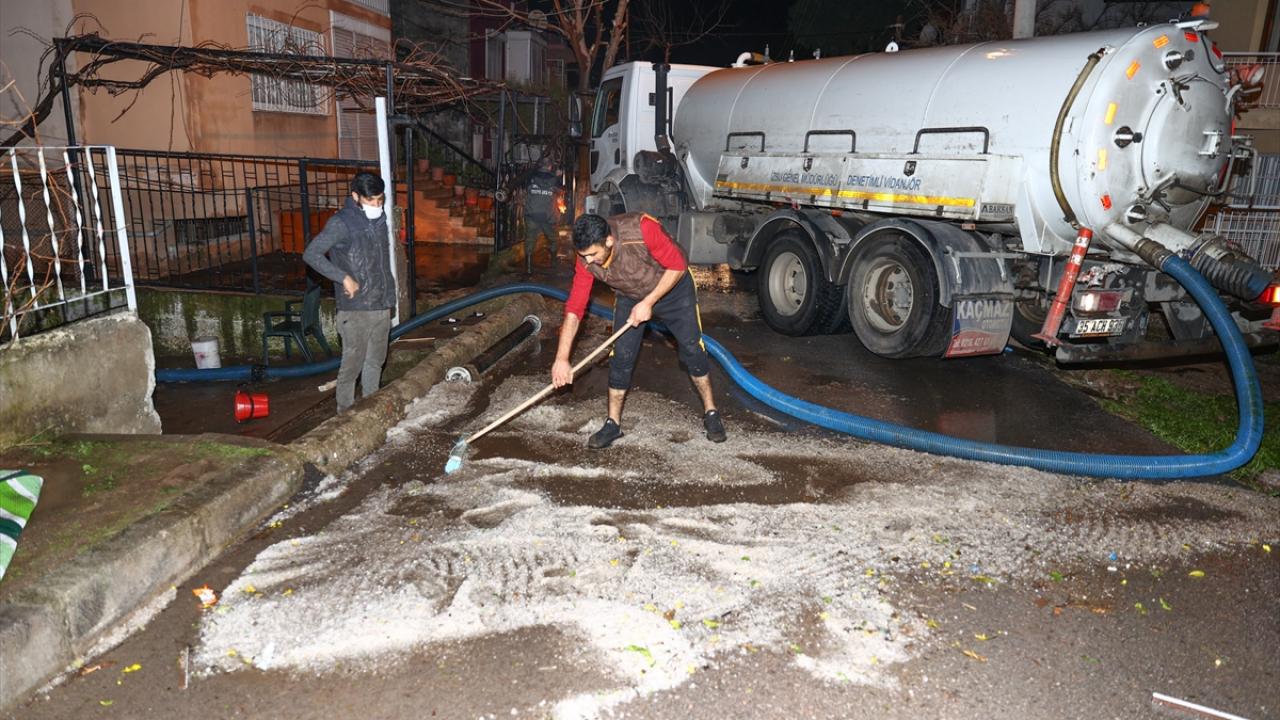 İzmir'deki kuvvetli yağış, su baskınlarına neden oldu. Bazı ev ve iş yerlerini su bastı.