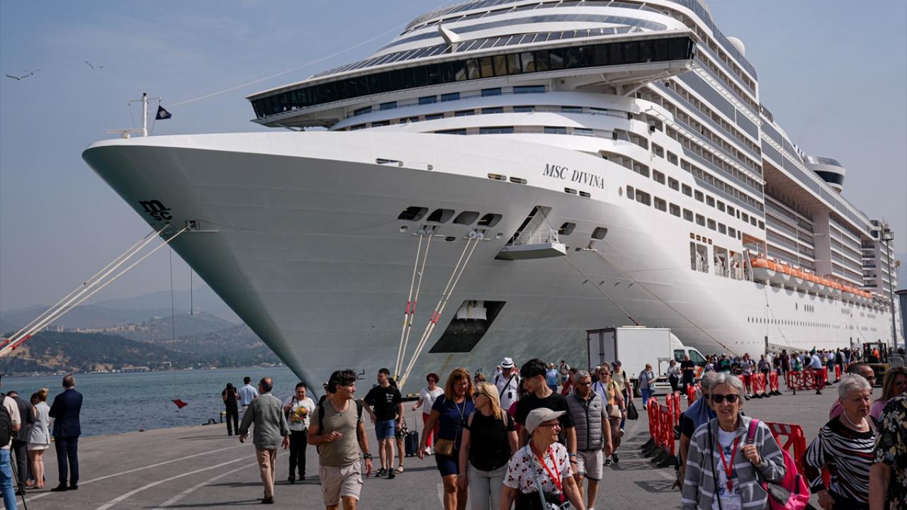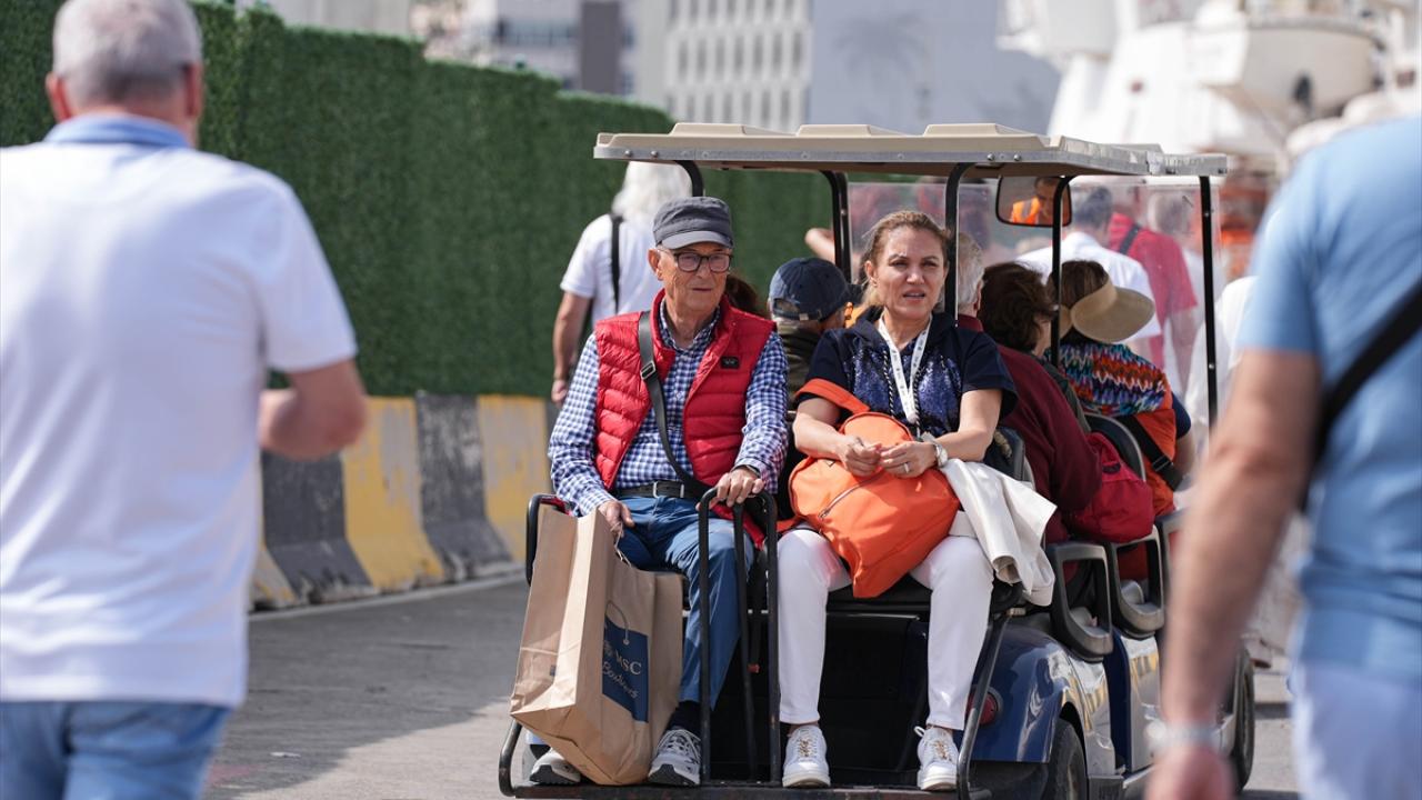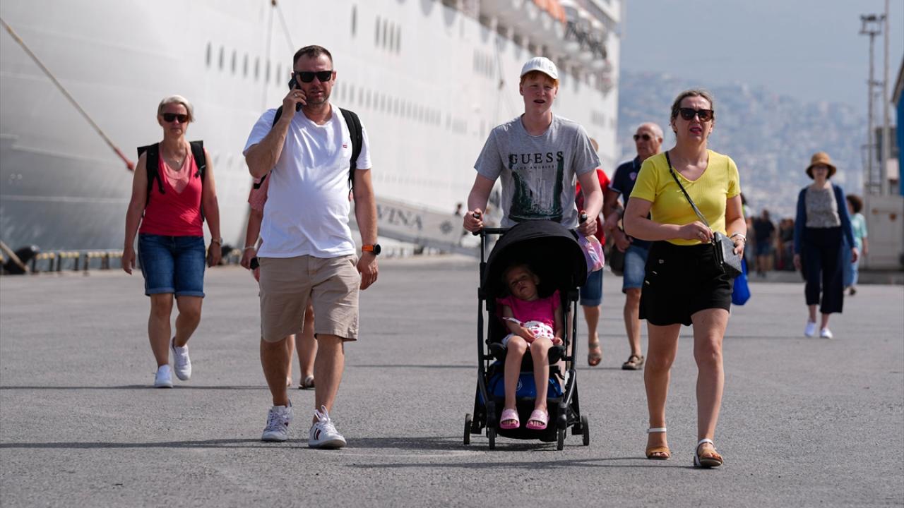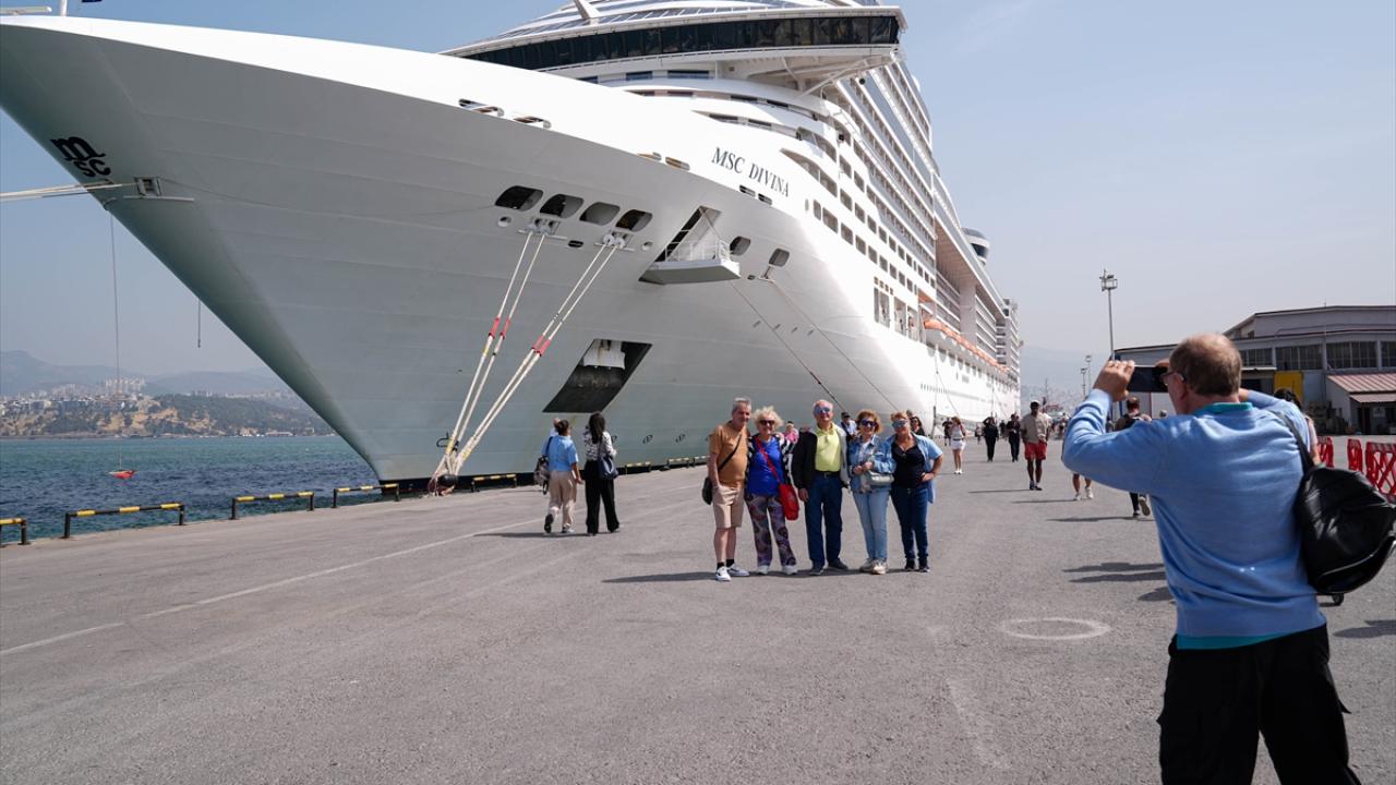 Gümrük işlemlerinin ardından gemiden inen yolcular, şehir merkezinin yanı sıra Bergama ve Efes antik kentleriyle Meryem Ana Evi`ni ziyaret için limandan ayrıldı.