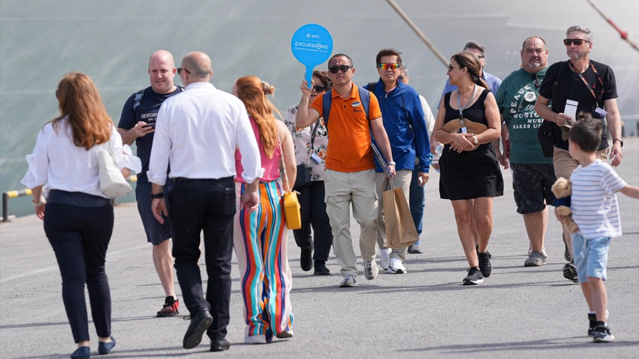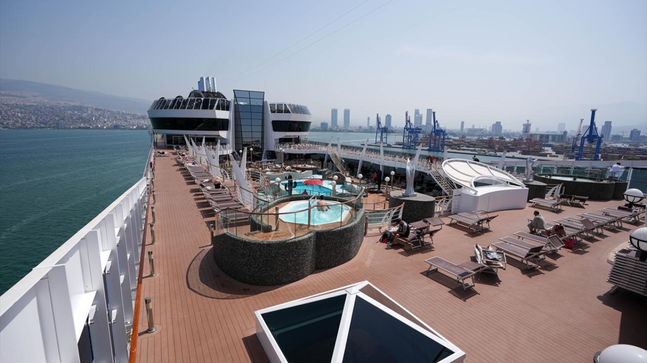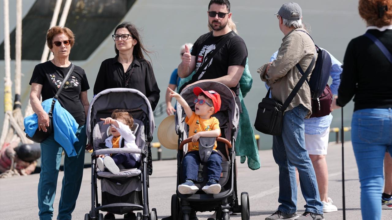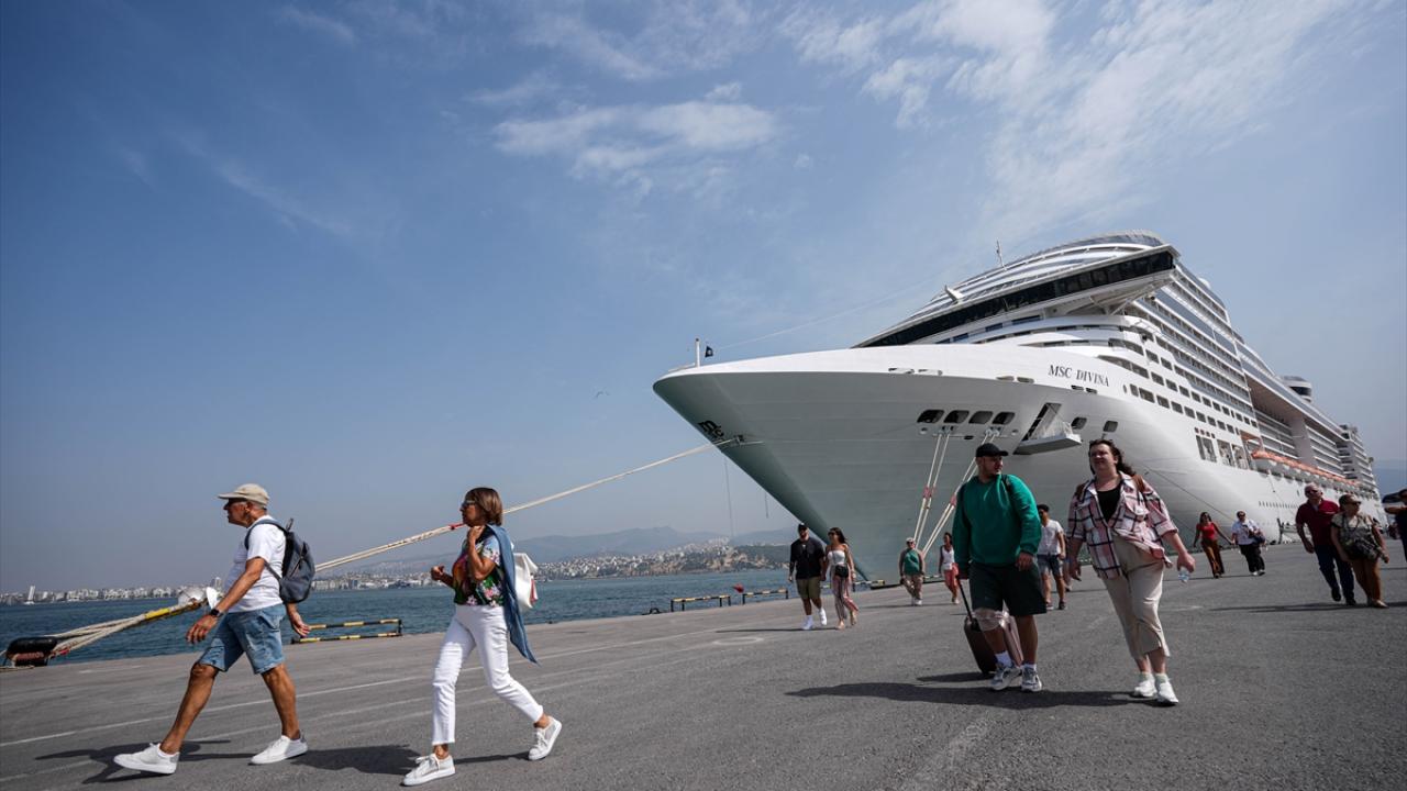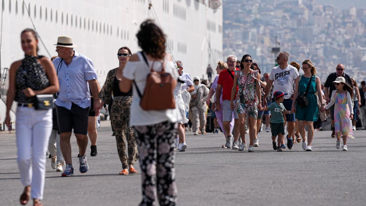Gümrük işlemlerinin ardından gemiden inen yolcular, şehir merkezinin yanı sıra Bergama ve Efes antik kentleriyle Meryem Ana Evi`ni ziyaret için limandan ayrıldı.