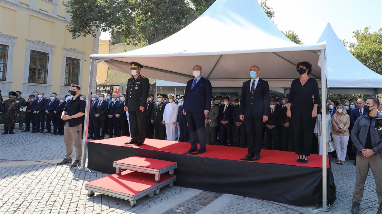 Törene İzmir Valisi Yavuz Selim Köşger (sol 2) İzmir Büyükşehir Belediye Başkanı Tunç Soyer (sağ 2) ile eşi Neptün Soyer (sağda) ile Ege Ordusu ve Garnizon Komutanı Orgeneral Ali Sivri (solda) de katıldı.