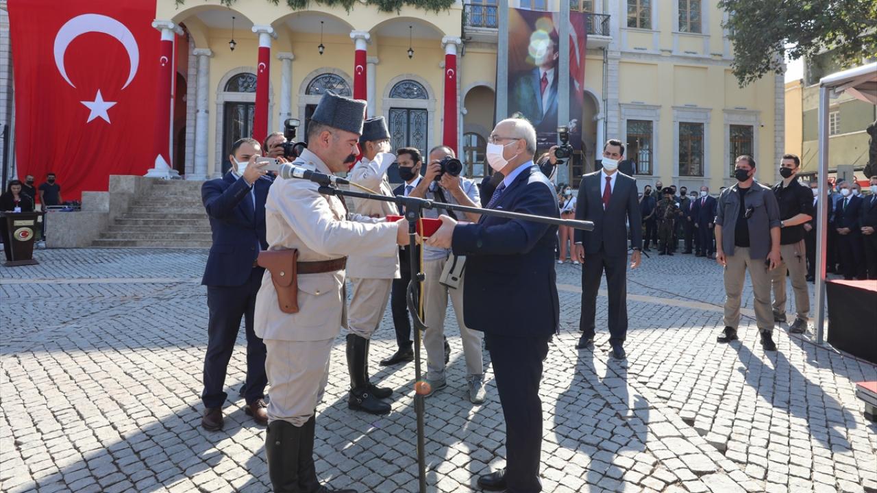 İzmir Valisi Yavuz Selim Köşger, süvari birliğinin komutanına Kur`an-ı Kerim ve Türk bayrağı verdi.