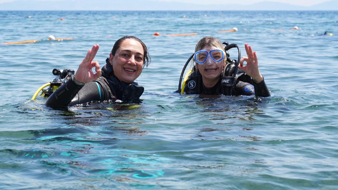 Keşif dalışlarıyla su altının güzelliklerini gören tatilciler, eşsiz deneyim yaşadı.