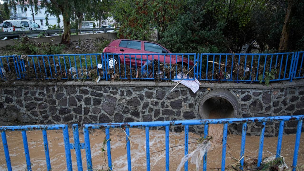 Mustafa Kemal Atatürk Mahallesi`ndeki dere, yağış nedeniyle taştı. Yükselen su dolayısıyla sürüklenen bir otomobil dere kenarındaki bariyerlere takıldı.