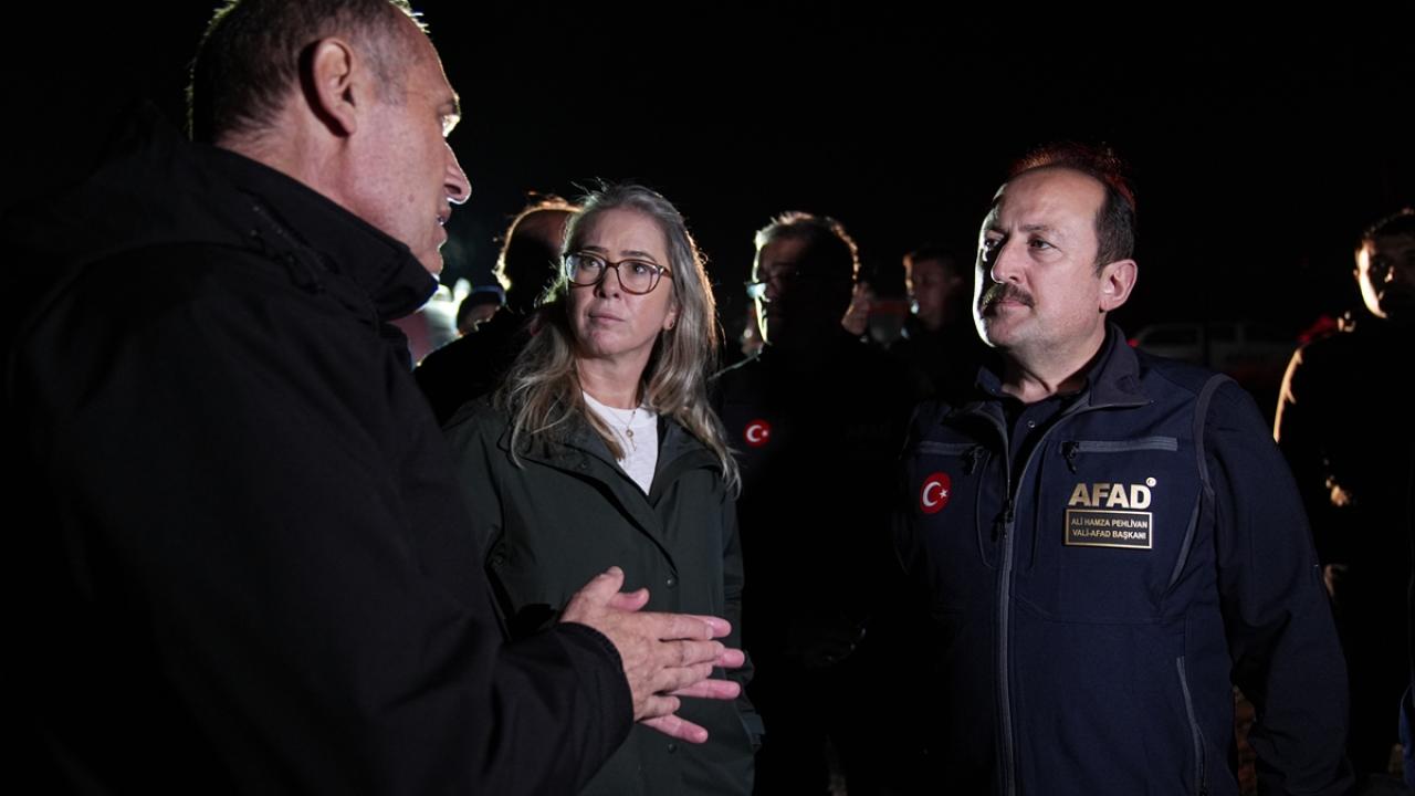 İzmir Valisi Süleyman Elban ile AFAD Başkanı Ali Hamza Pehlivan, bölgede inceleme yapıp, ekiplerden bilgi aldı.