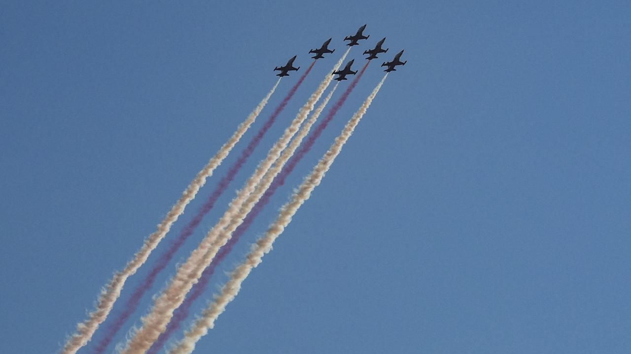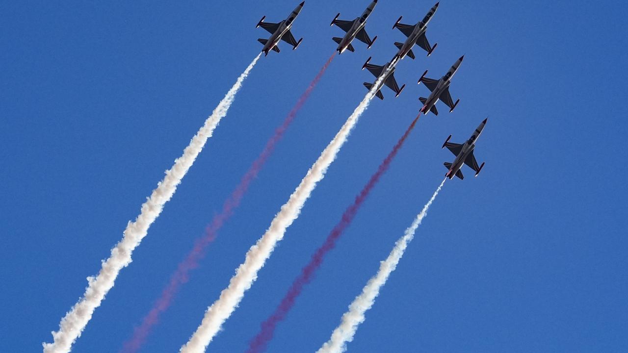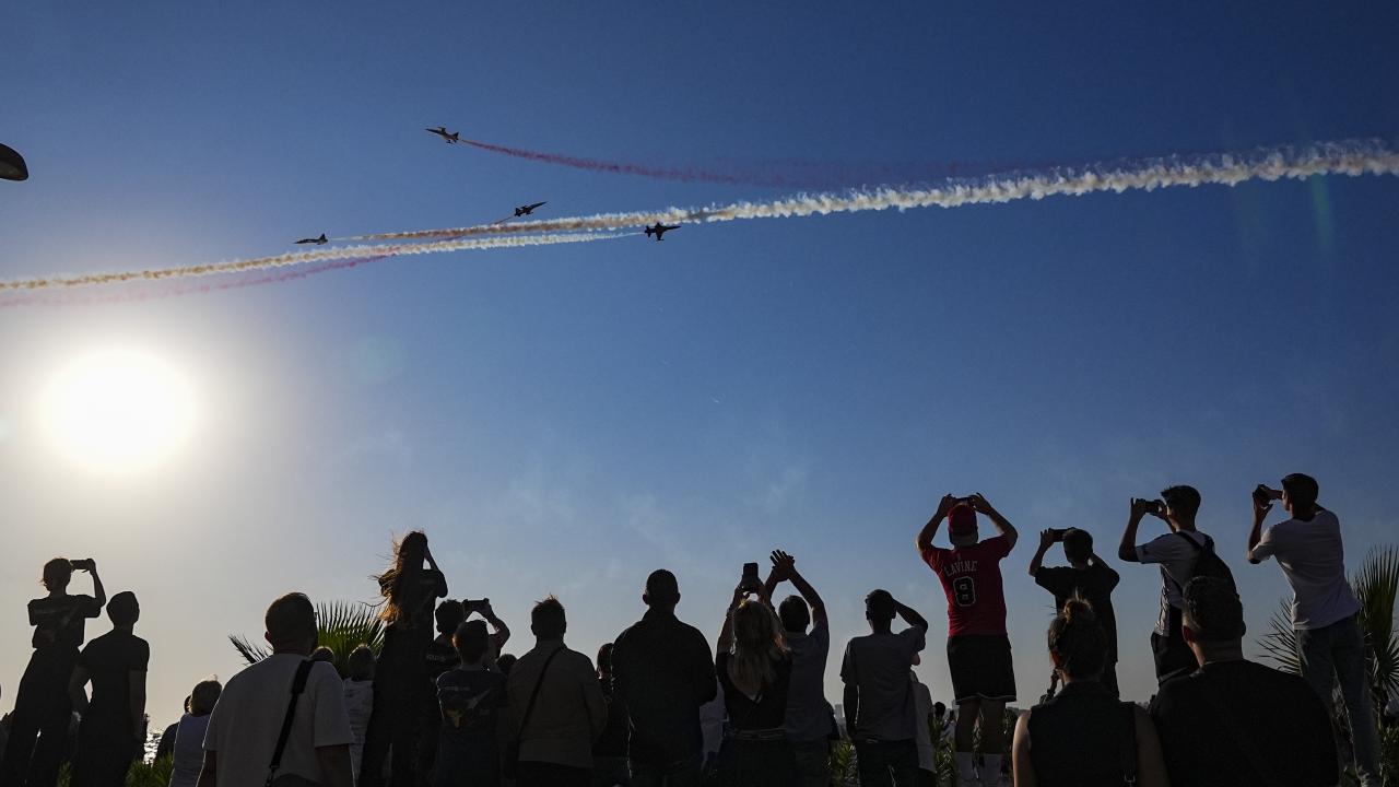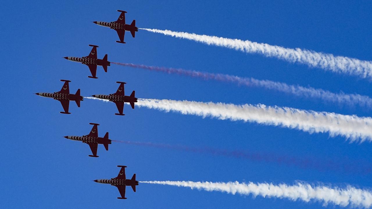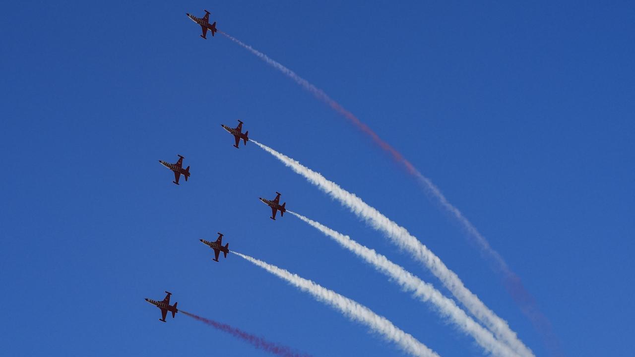 Türk Hava Kuvvetlerinin akrobasi timi Türk Yıldızları ile SOLOTÜRK, İzmir'in düşman işgalinden kurtuluşunun 103. yıl dönümü dolayısıyla hava gösterisi yaptı.