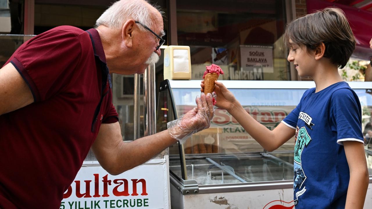 İzmirli dondurmacı Arif dede, bedava dondurmayla çocukları sevindiriyor