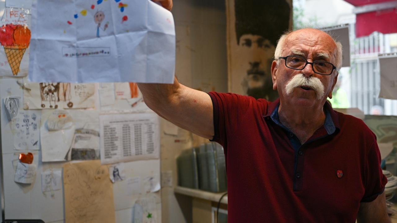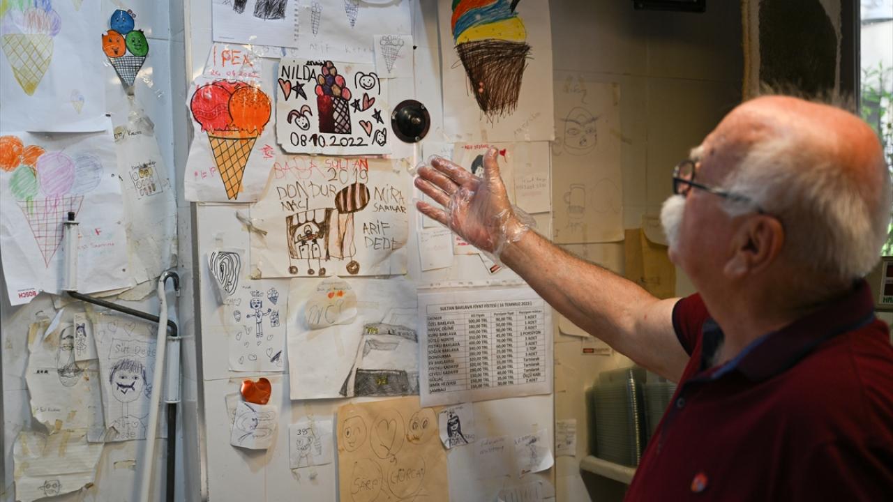 Suyolcu, kendisine "Arif Dede", "Dondurma Dede", "Süt Dede", "Pala Dede" diye seslenen çocukların çizdiği resimleri de dükkanında sergiliyor.