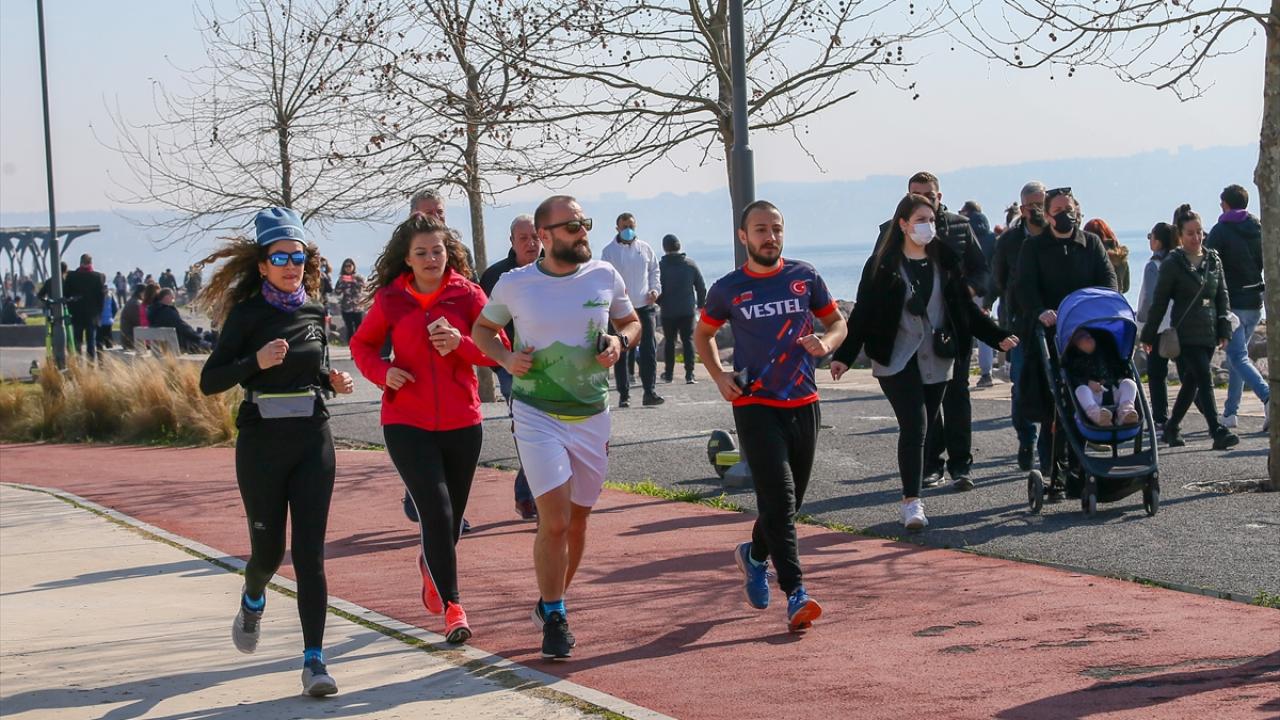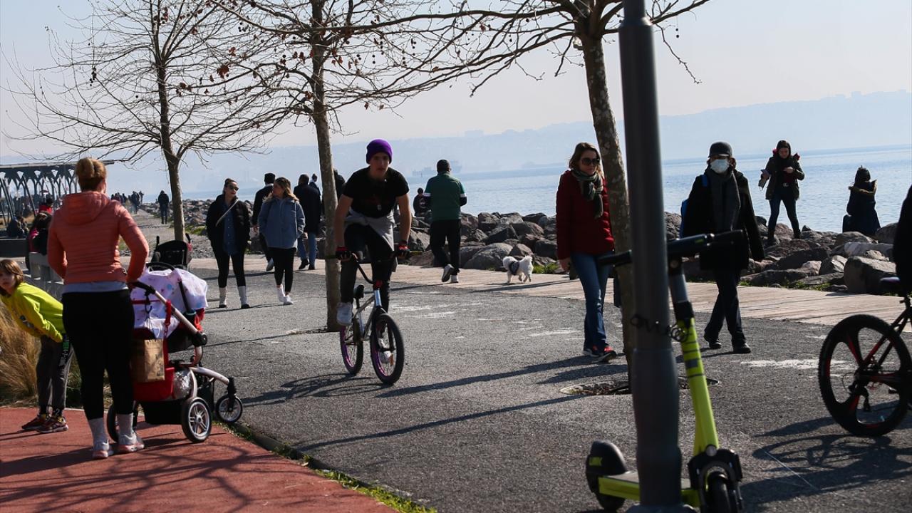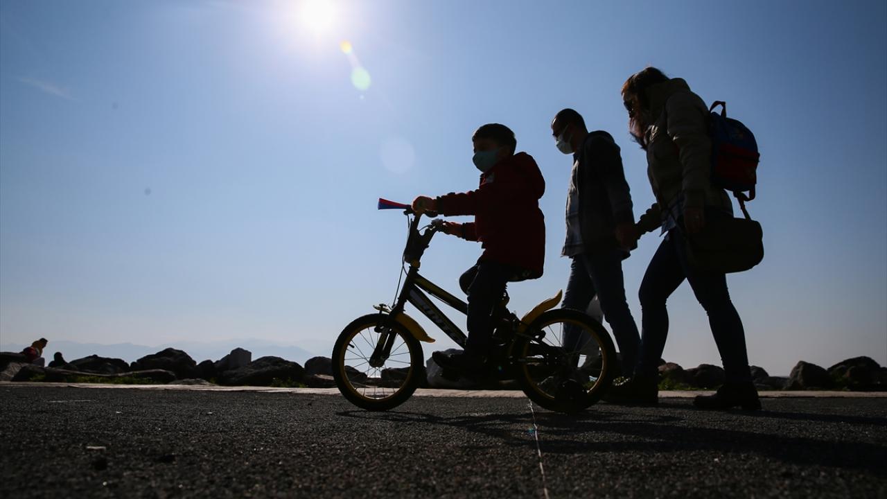 Bazı vatandaşlar deniz kıyısında yürüyüş yaparken, bazıları da bisikletlerle gezdi.