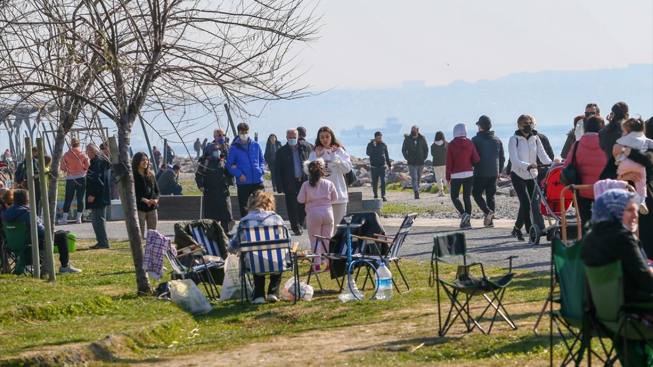 Denize yakın noktalardaki kafelerde de yoğunluk gözlenirken kamp sandalyesi getirenler çimlerin üzerinde sohbet etti.