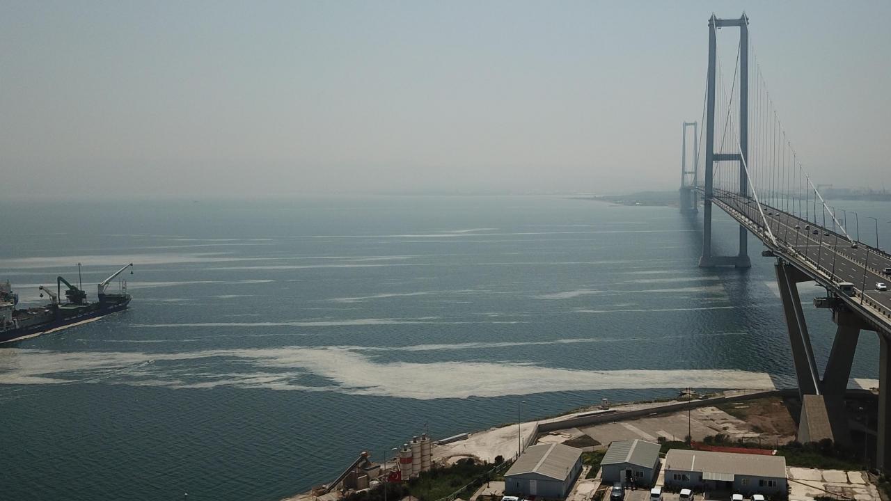 Özellikle balıkçıları endişelendiren deniz salyası şimdi de İzmit Körfezi Dilovası açıklarında ortaya çıktı.