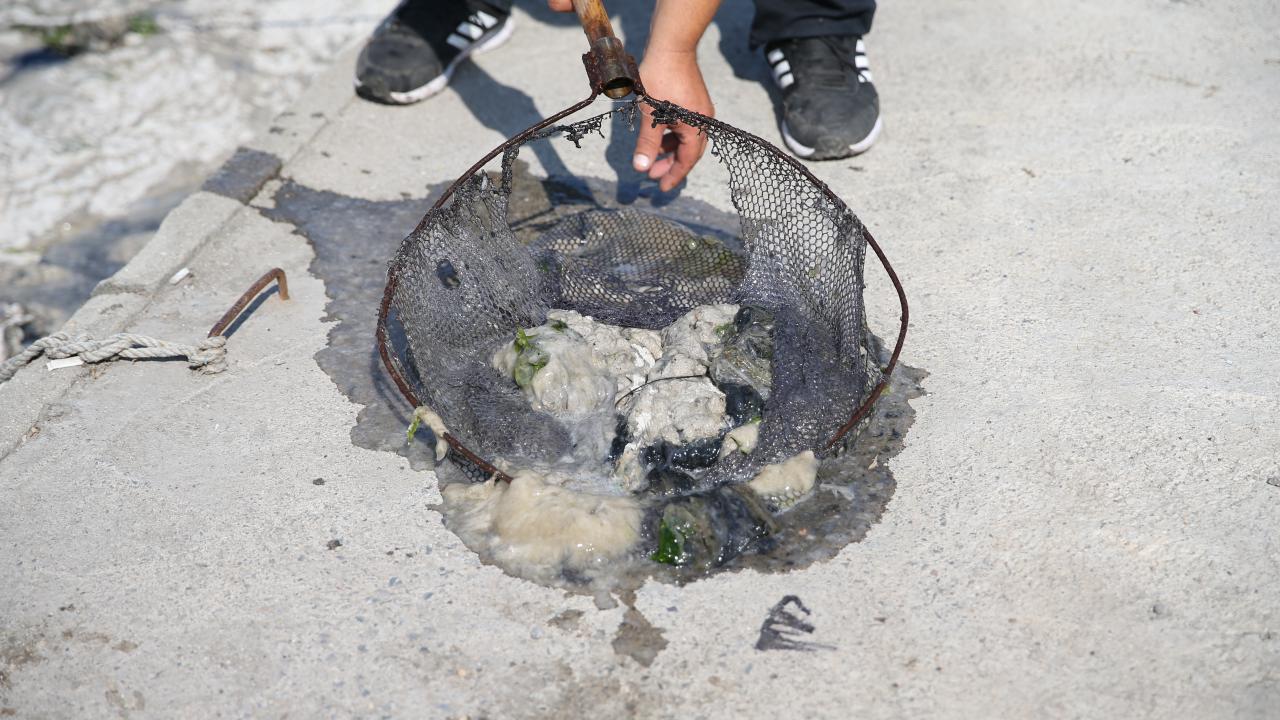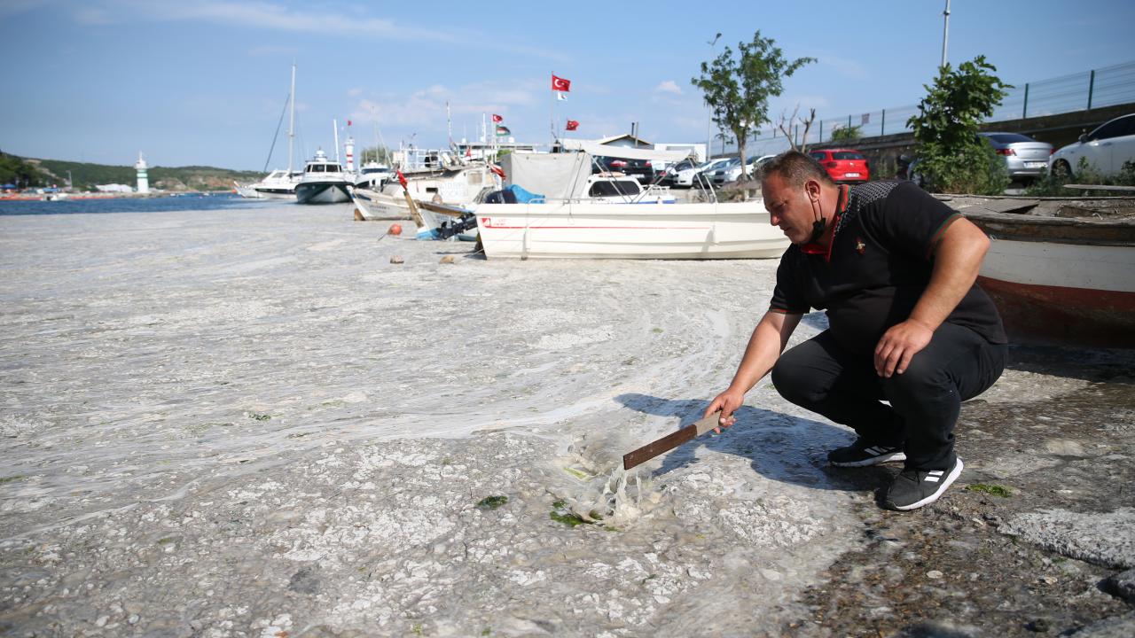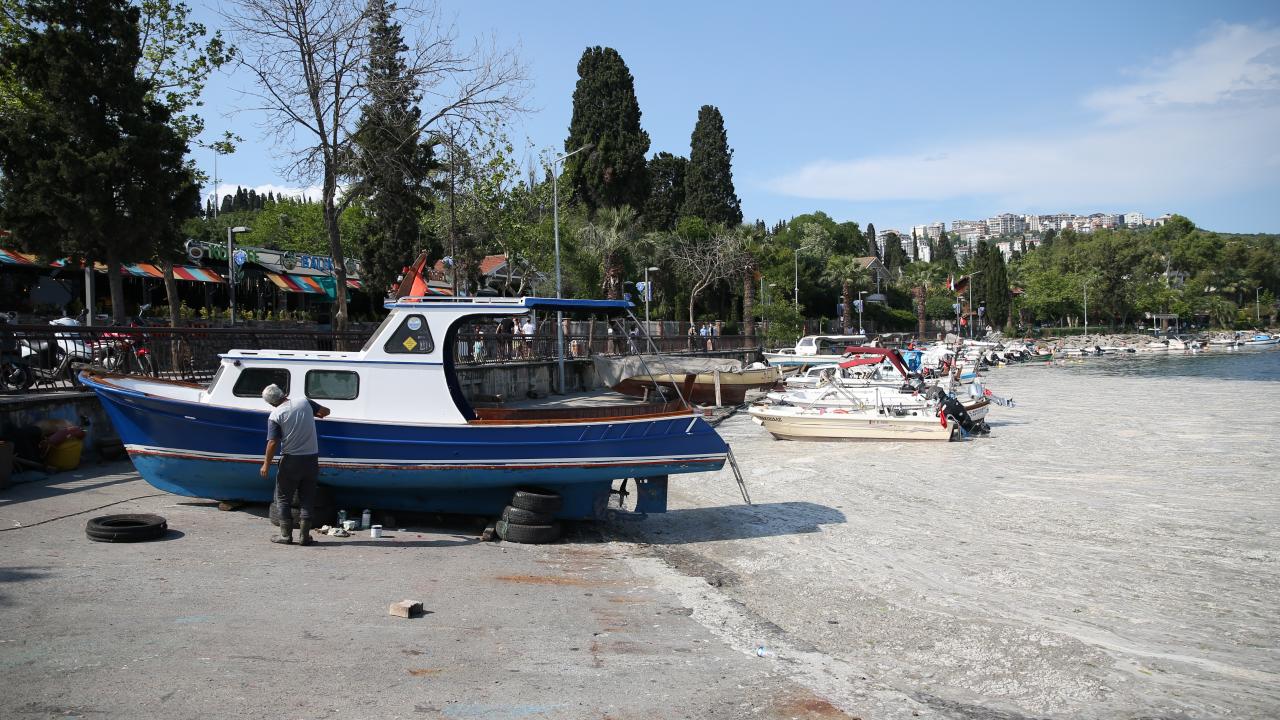 Burada özellikle marina bölgesinde etkili olan ve birçok bölgeyi kaplayan müsilaj, teknelerin giriş ve çıkışlarını etkiliyor.