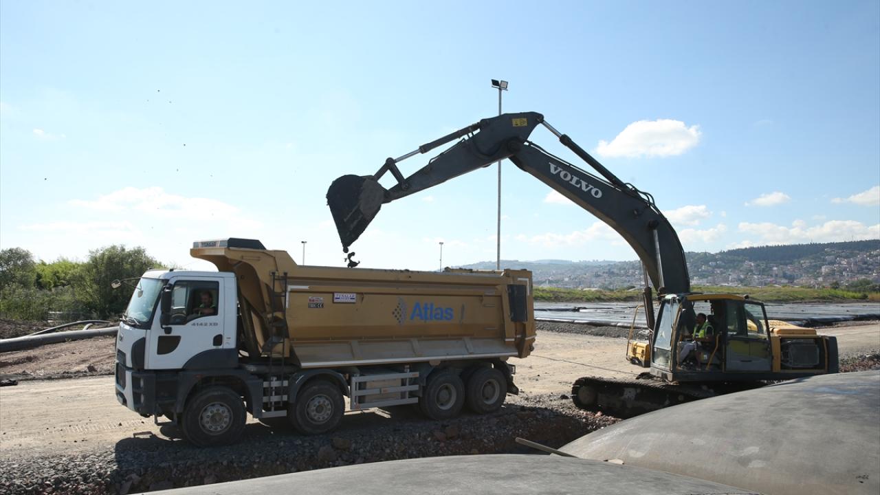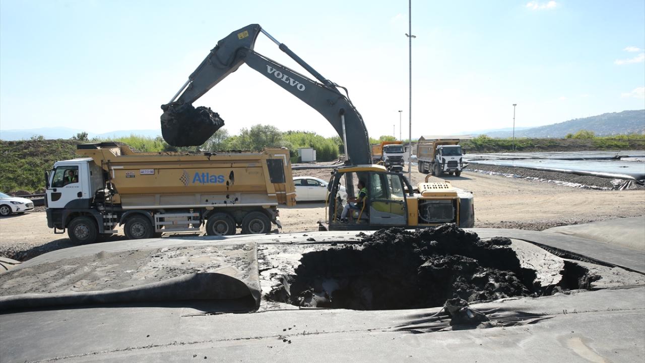 Ekipler, ilk etapta yüzde 60 kuruluğa erişen 20 tüpü kesip içindeki çamuru kamyonlarla depolama alanına sevk etmeye başladı.