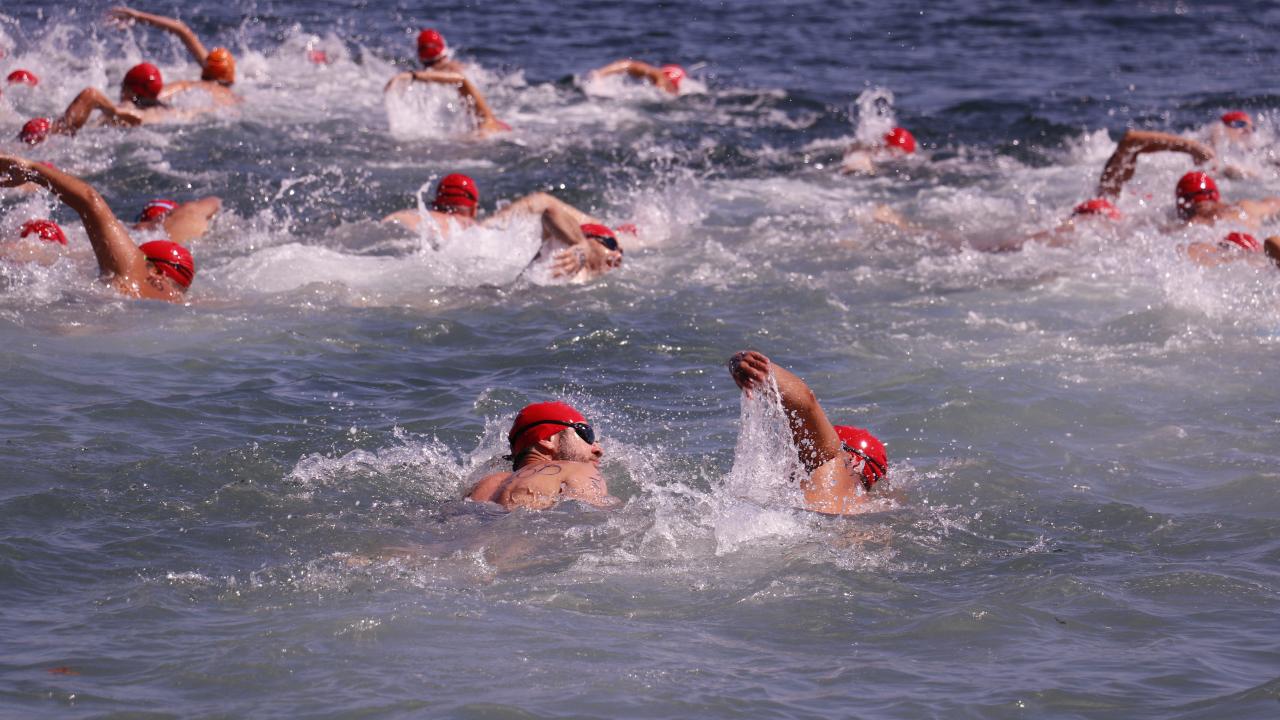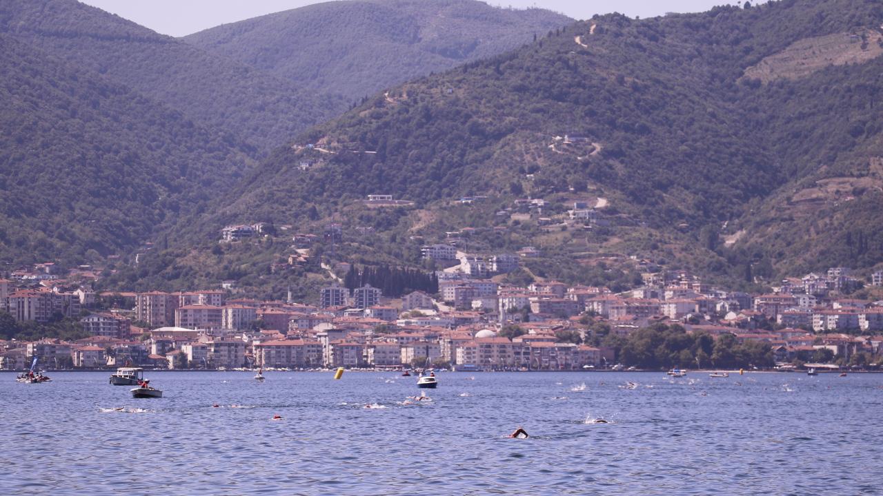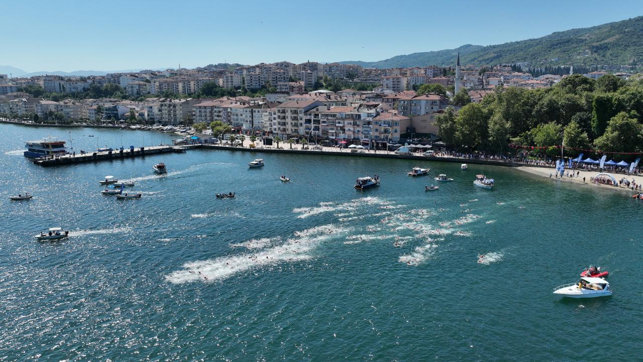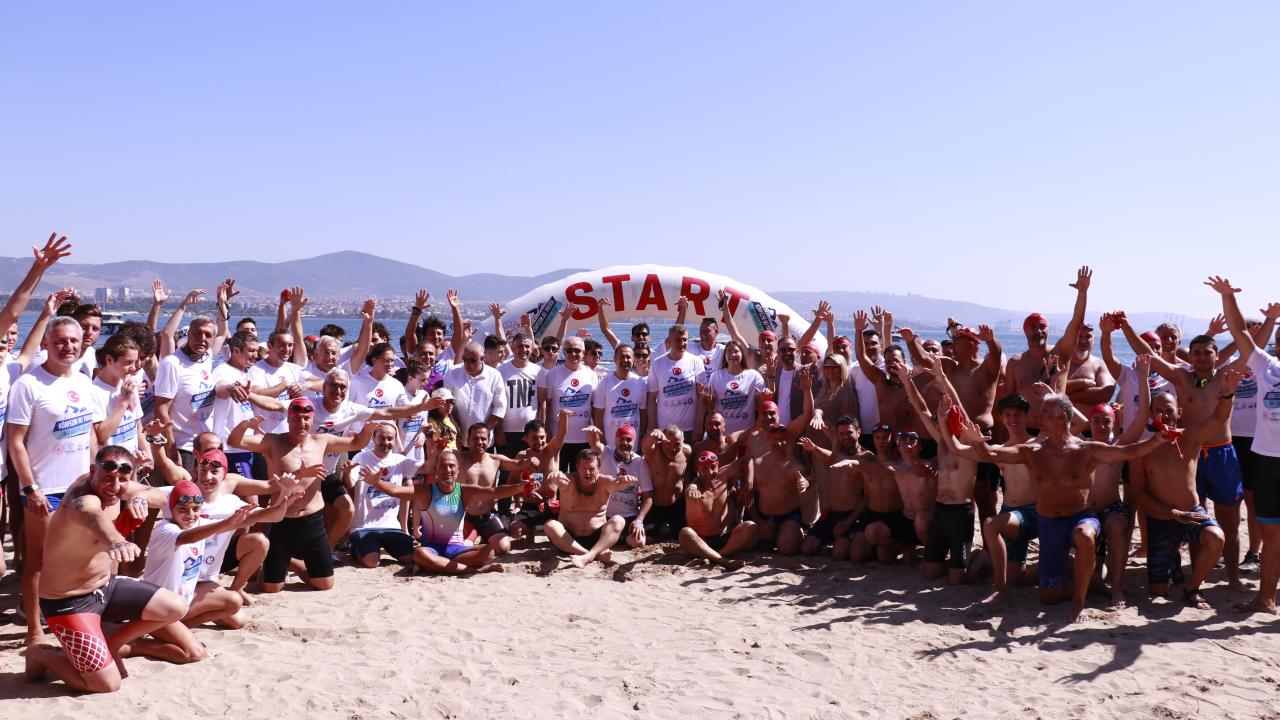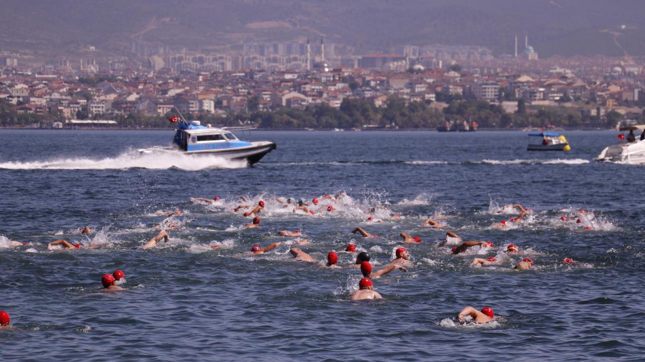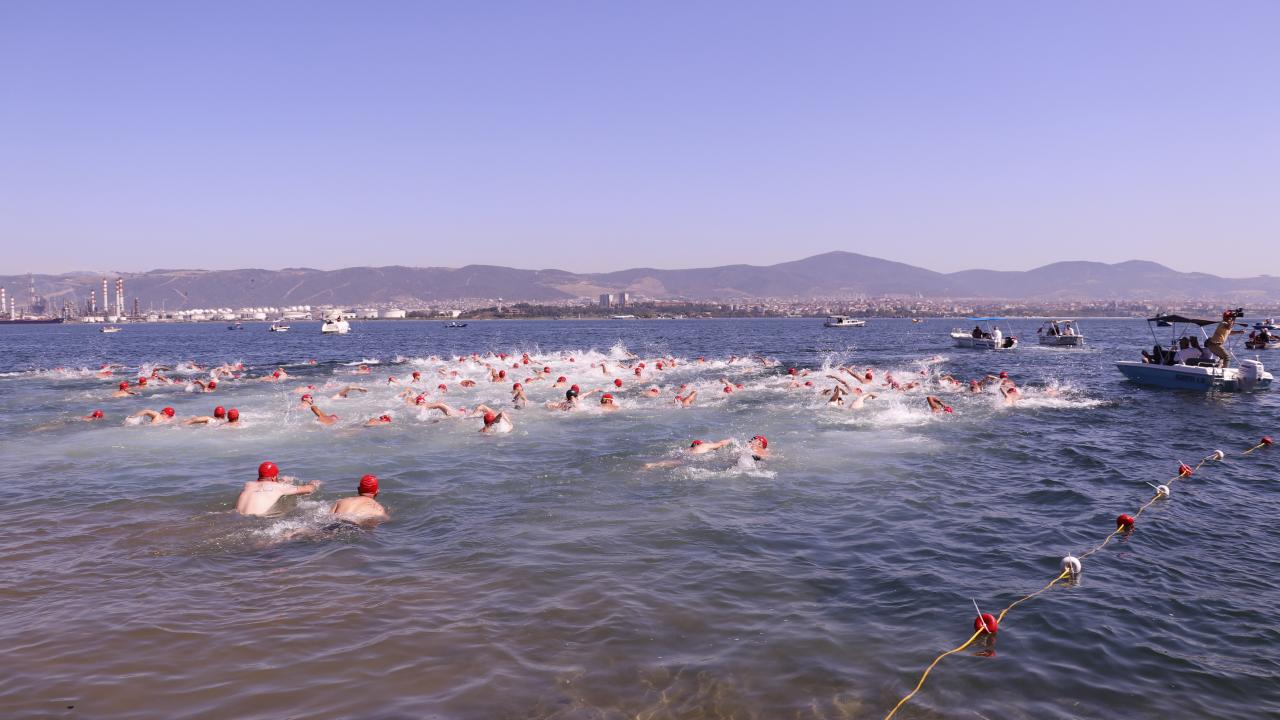 Gölcük`teki Değirmendere sahilinden İzmit Körfezi`ne atlayan yüzücüler, 2 bin 622 metre kulaç atarak Derince sahilindeki bitiş noktasında karaya çıktı.