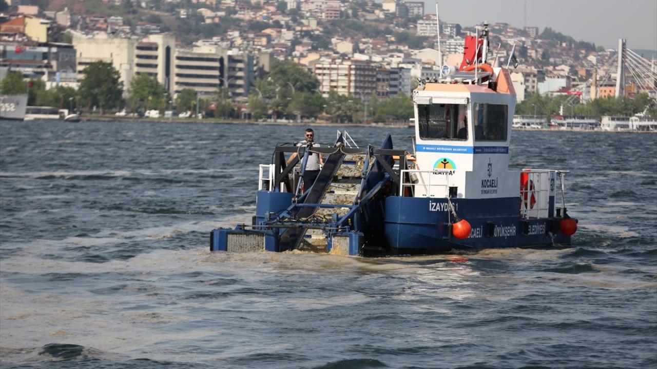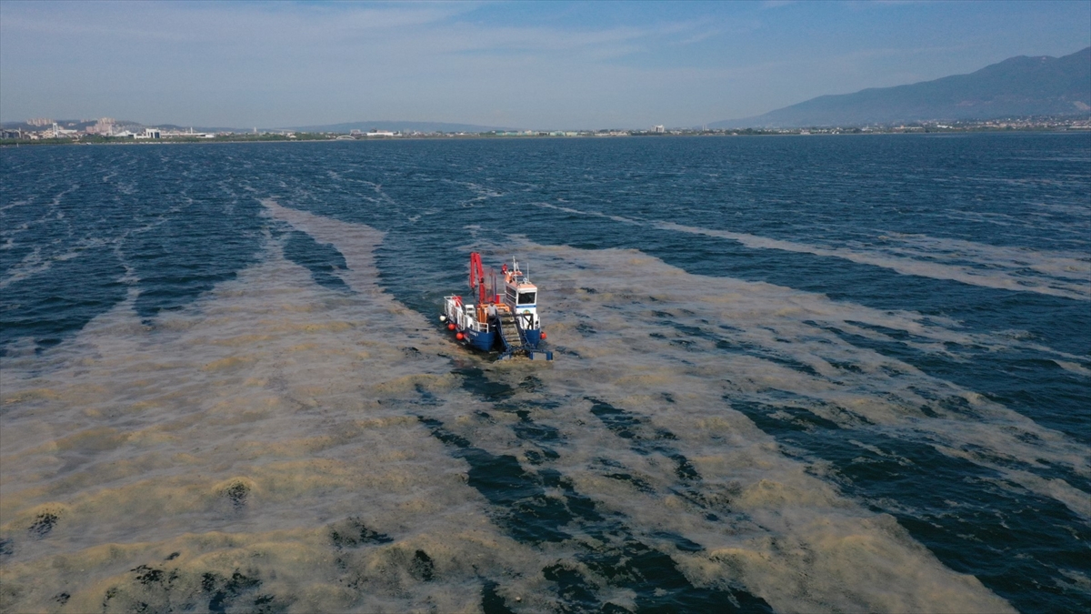 İzmit Körfezi'nde, beyaz tabakanın temizlenmesi için çalışmalar sürüyor. Körfezden 100 ton deniz salyası temizlendi.
