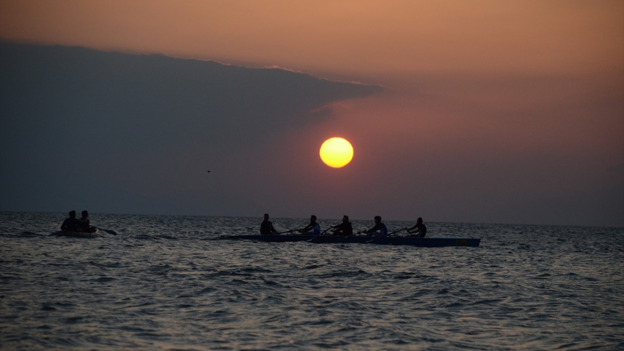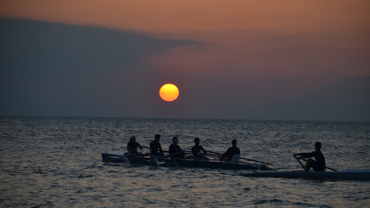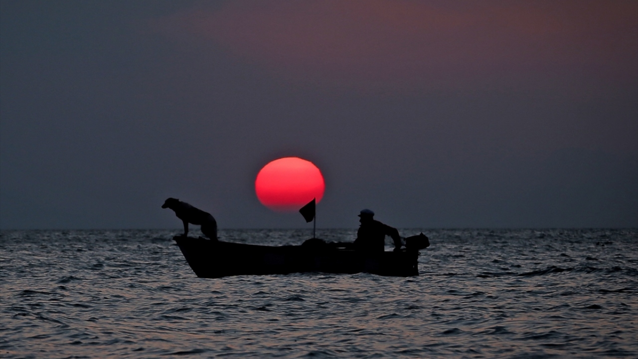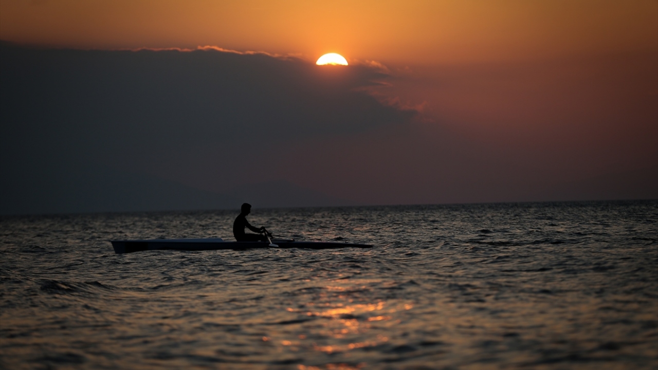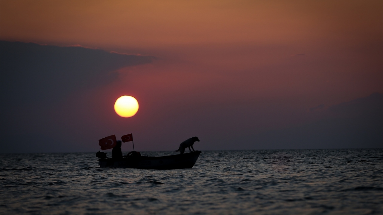Fotoğrafçılar ise Türkiye`nin 5`inci büyük gölü olan İznik Gölü`nde, Güneş`in suya kavuştuğu anı yakalayabilmek için birbirleriyle yarıştı.