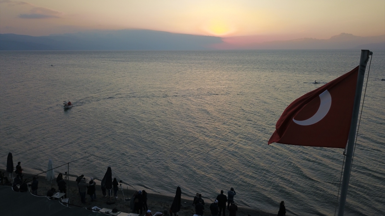 Bursa Büyükşehir Bandosu`nun gösterisinin ardından katılımcılar, İznik Gölü kıyısındaki Gün Batımı Plajı`na gelerek Güneş`in batışını seyretti.
