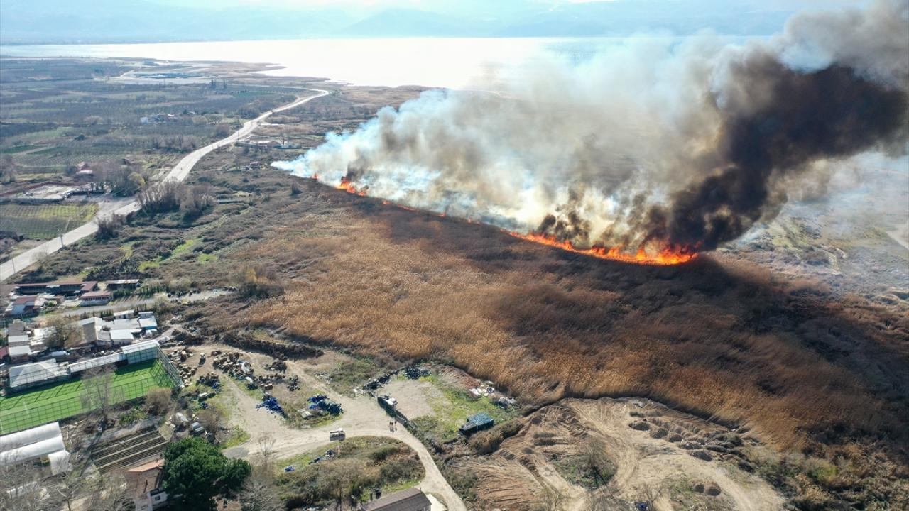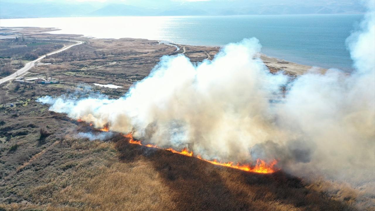 İznik Gölü kıyısındaki sazlık alanda yangın çıktı