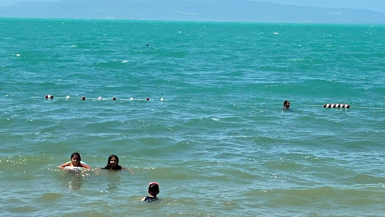 Vatandaşlar, turkuaz olan suda yüzerken bazıları ise manzarayı ölümsüzleştirmeyi tercih etti.