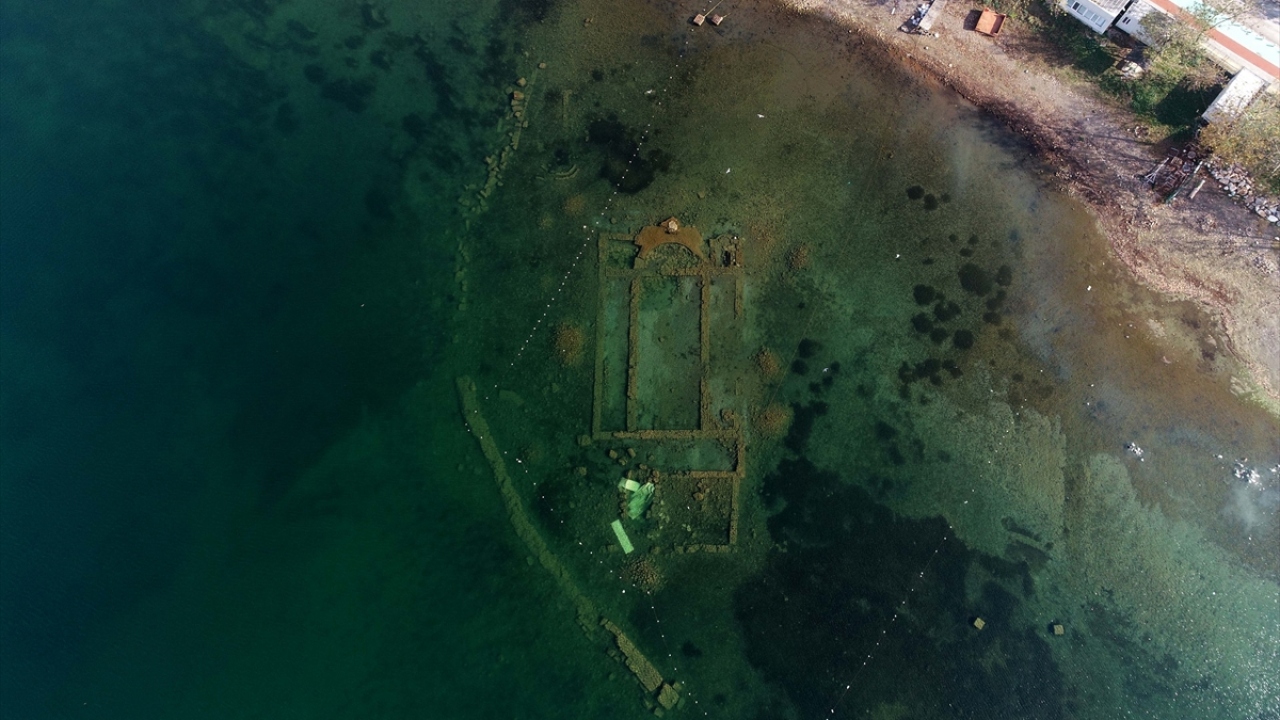 İznik Gölü'nde su seviyesinin azalması bazilikayı görünür hale getirdi