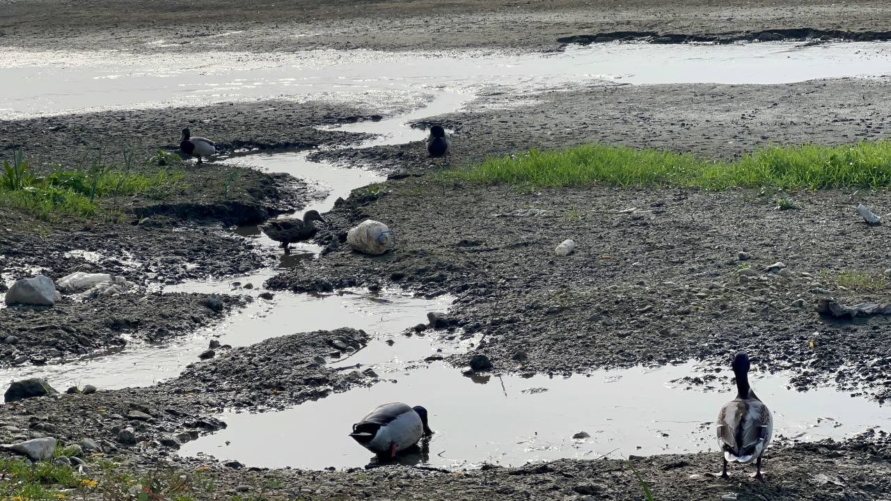 Kayıklar karaya otururken gölde yaşayan ördeklerin susuzlukla mücadelesi kameralara yansıdı.