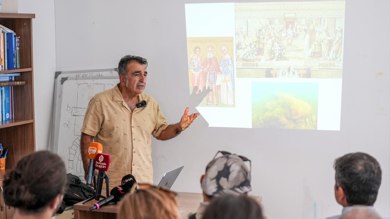 Kazının bilimsel danışmanı BUÜ Fen-Edebiyat Fakültesi Arkeoloji Bölümü Başkanı Prof. Dr. Mustafa Şahin, İznik Gölü Bazilikal Kilisesi`nde 2015`ten bu zamana kadar yapılan çalışmalarla ilgili bilgilendirme toplantısı düzenledi.