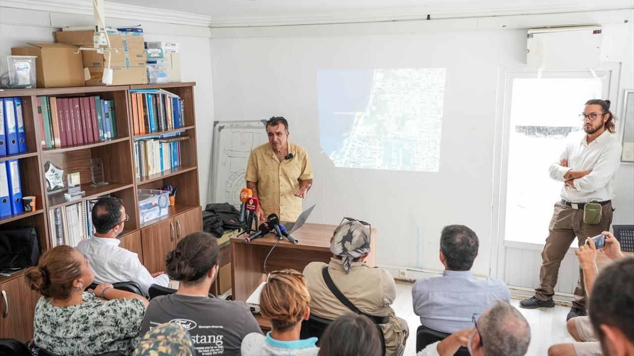 Kazı alanında gerçekleşen toplantıda Prof. Dr. Şahin, kazılarda ve su altı araştırmalarında elde edilen bulguları sunumla anlattı.