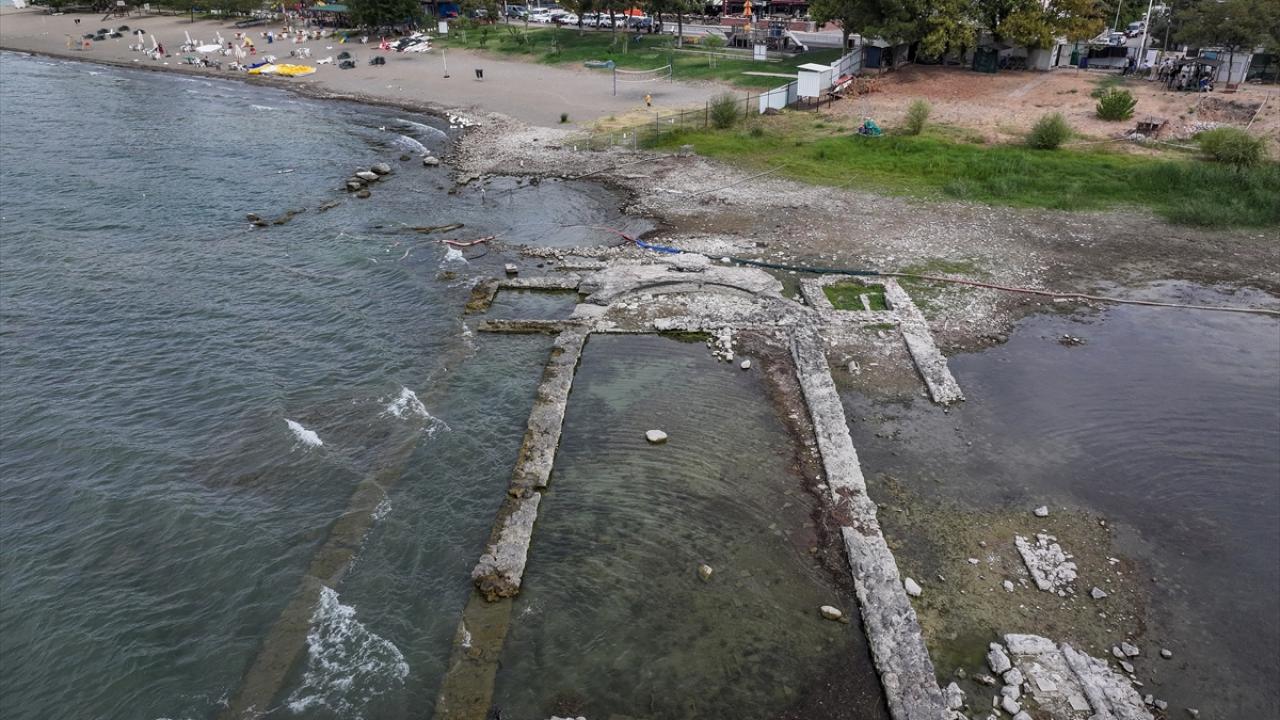 Bu arada İznik Gölü`nde yaşanan su çekilmesi nedeniyle batık bazilika kalıntısının büyük bölümünün görünür hale geldiği gözlendi.