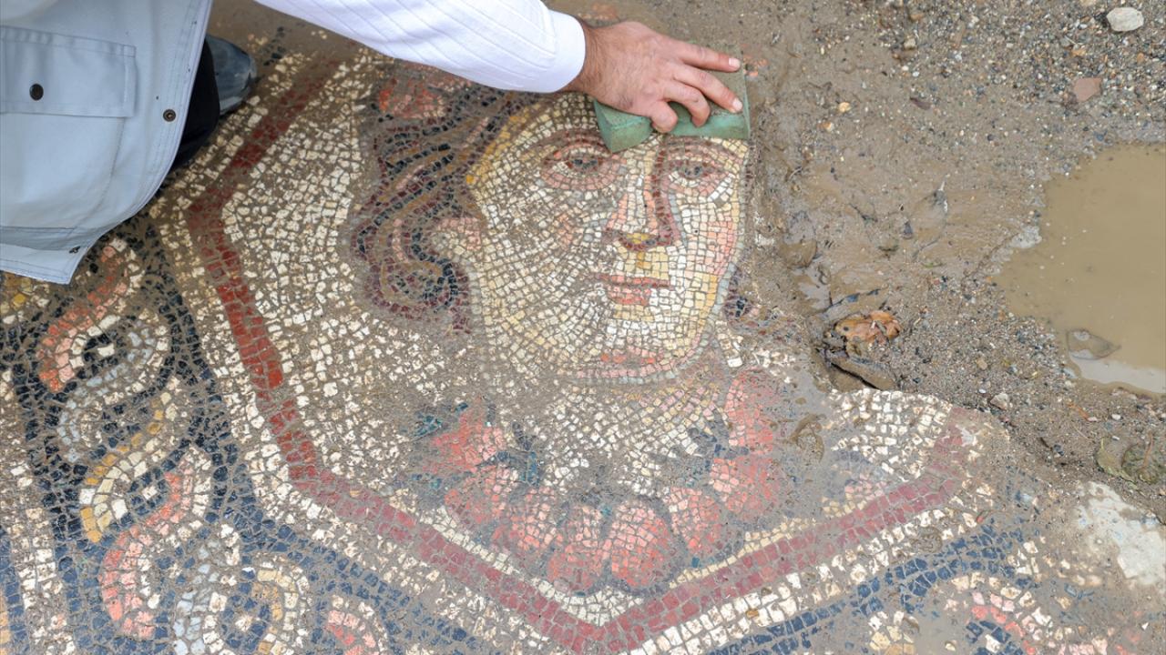 Bursa'nın İznik ilçesinde, 11 yıl önce kanalizasyon çalışmaları sırasında görülen taban mozaiğinin bir bölümü, bu sene başlanan arkeolojik çalışmalar sonucunda ortaya çıkarıldı.