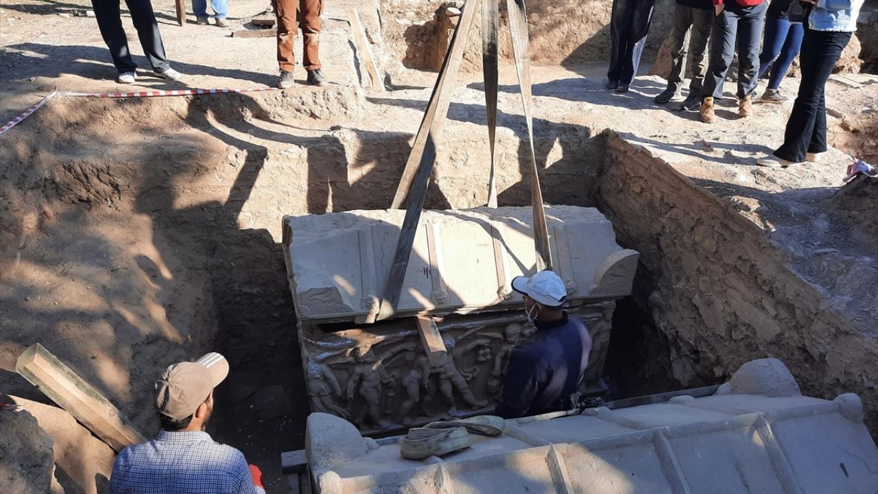 Patlatılmış lahdin içinden bir kadın ve bir erkek iskeleti, diğerinden ise kadın iskeleti çıktığını aktaran Meriç, "Üzerinde kefen var, tamamen sımsıkı mumyalanmış bir şekilde, şu anda korumaya alındı" dedi.