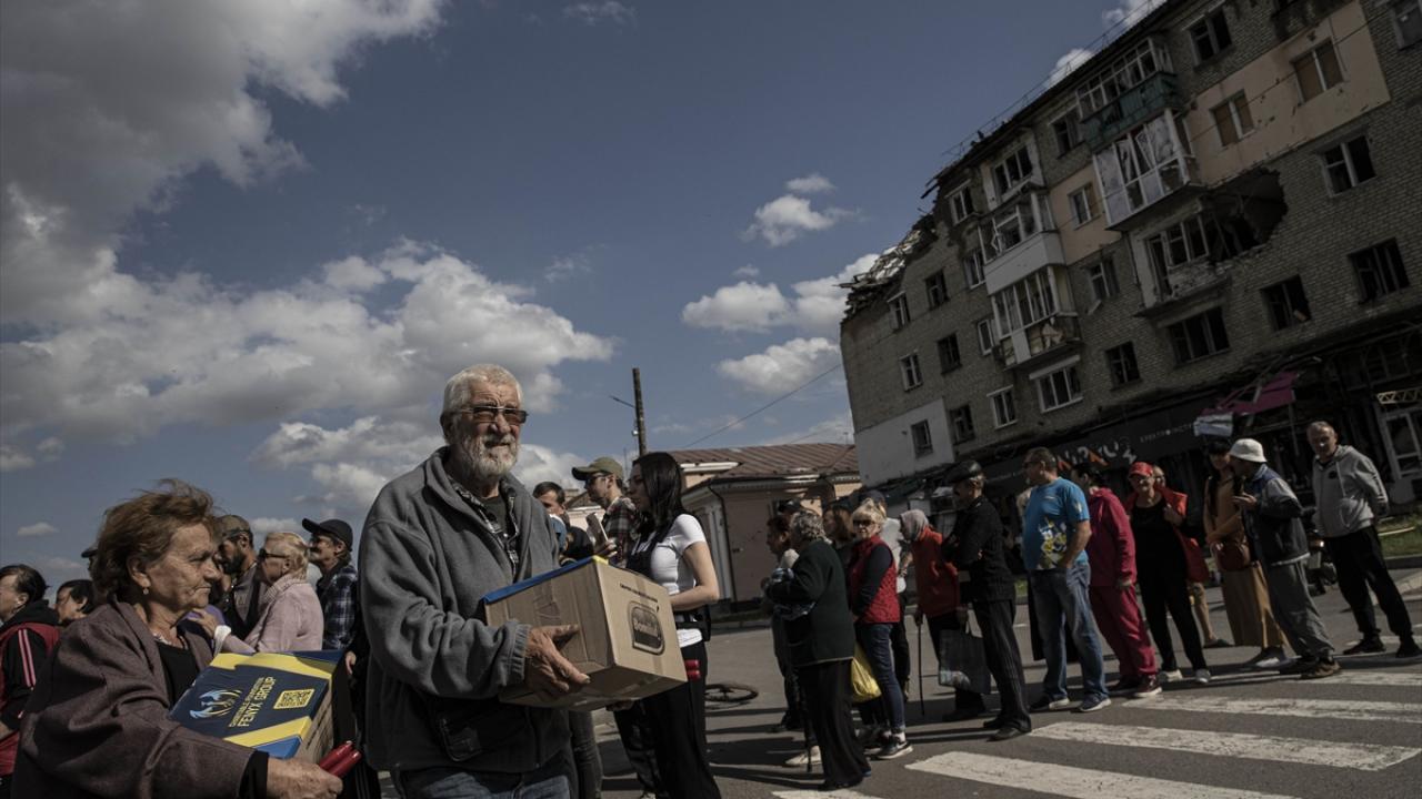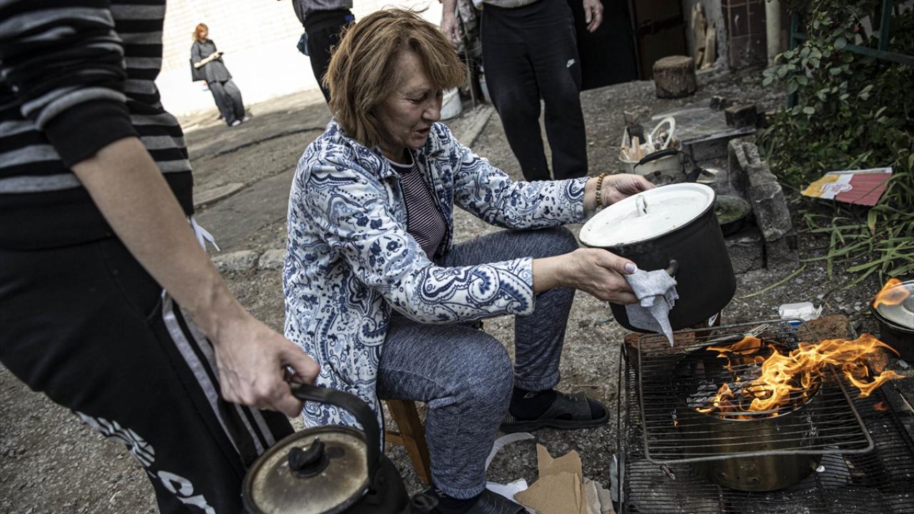 Ukrayna ordusunun Rus güçlerinden geri aldığı Harkiv bölgesine bağlı İzyum şehirde elektrik, su ve doğal gaz hizmetleri verilemediğinden şehir sakinleri yemeklerini evlerinin önünde açık havada odun ateşinde pişiriyor, su ihtiyacını ise taşıma usulle gidermeye çalışıyor.