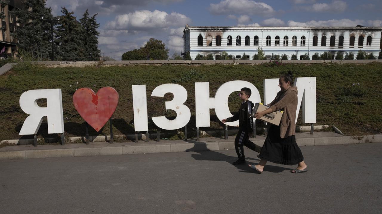 Rusya ile Ukrayna arasında 24 Şubat`ta başlayan savaşta en fazla etkilenen şehirlerden biri olan İzyum`da yıkım oldukça fazla. Özellikle şehri ikiye ayıran Donest Nehri`nin doğusunda kalan bölgede çok sayıda ev saldırılar nedeniyle yıkılmış veya yanmış durumda.