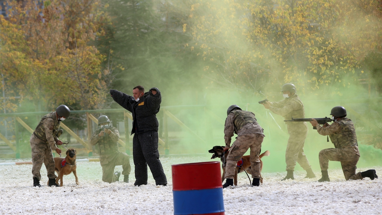 Nevşehir'de 29 Ekim Cumhuriyet Bayramı dolayısıyla tören düzenlendi. Jandarma At ve Köpek Eğitim Merkezi (JAKEM) Komutanlığındaki eğitimli at ve köpeklerin gösteri sunduğu programda, rehine kurtarma operasyonu ilgiyle izlendi.