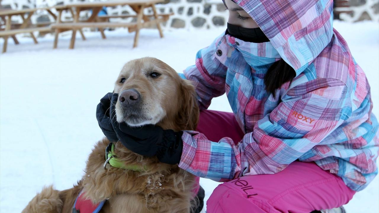 Palandöken Kayak Merkezi`ndeki 2 bin 600 rakımlı karakolda görevli JAK personelinin adeta "gözü ve kulağı" olan Gurbet`e, kayak merkezine gelen çocuklar ve tatilciler de yoğun ilgi gösteriyor.
