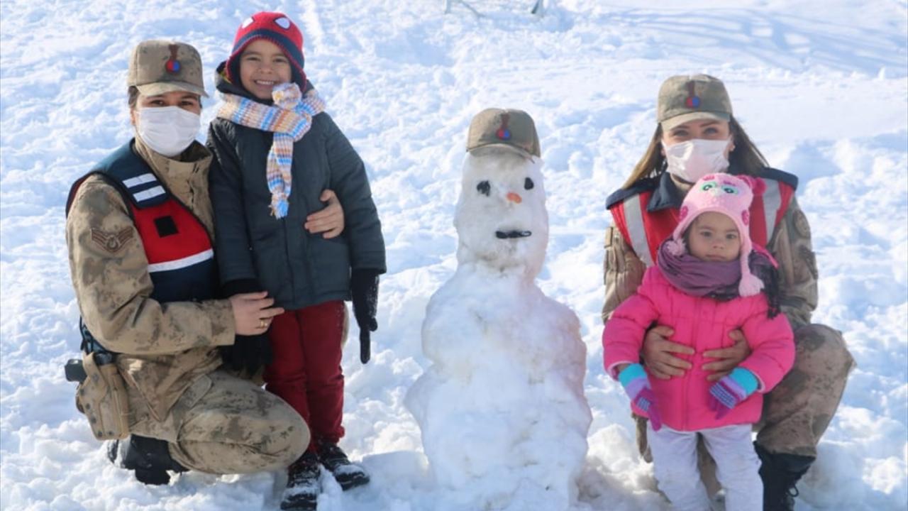 Kahramanmaraş'ta jandarma ekipleri çocuklarla kardan adam yaptı.