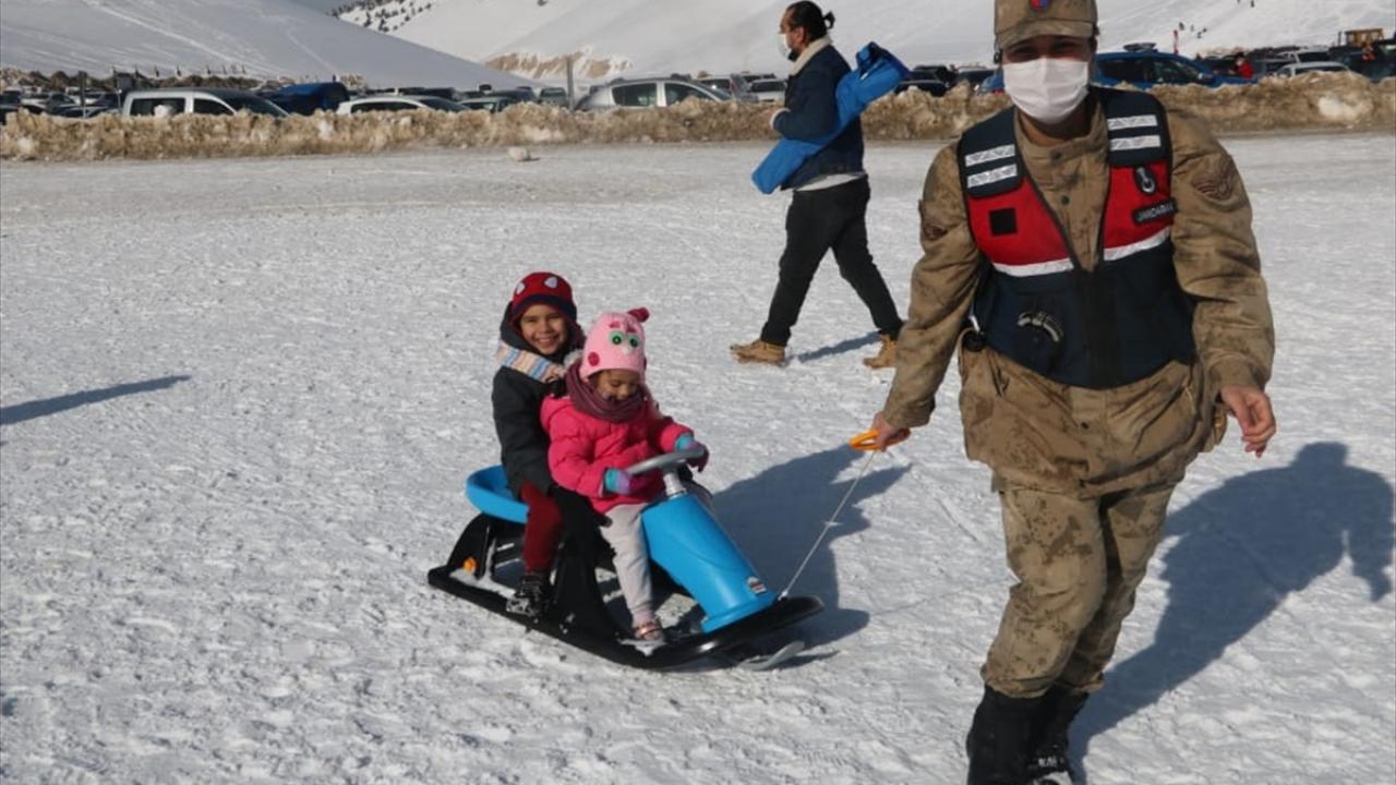 Çocukların eğlenmesini sağlayan jandarma ekipleri, onlara "jandarma çocuk" dergisi hediye etti.