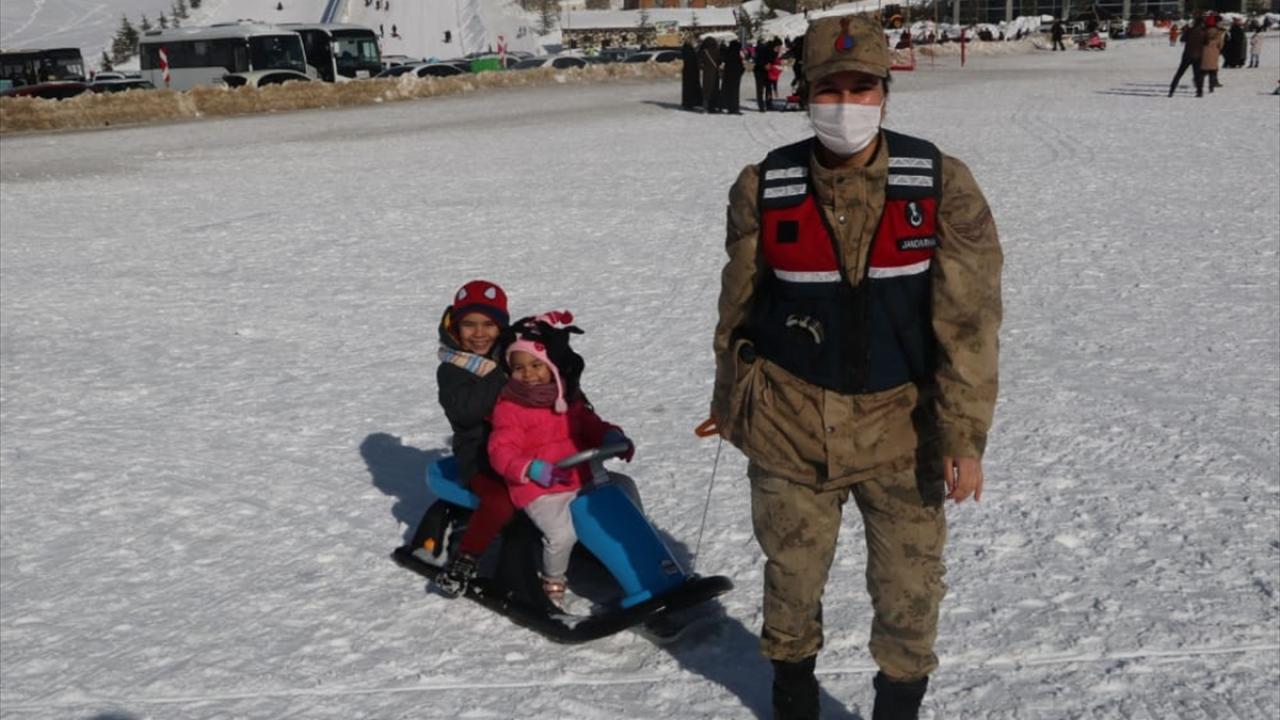 Jandarma çocuklarla kardan adam yaptı
