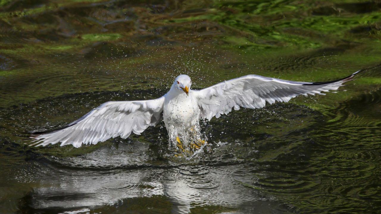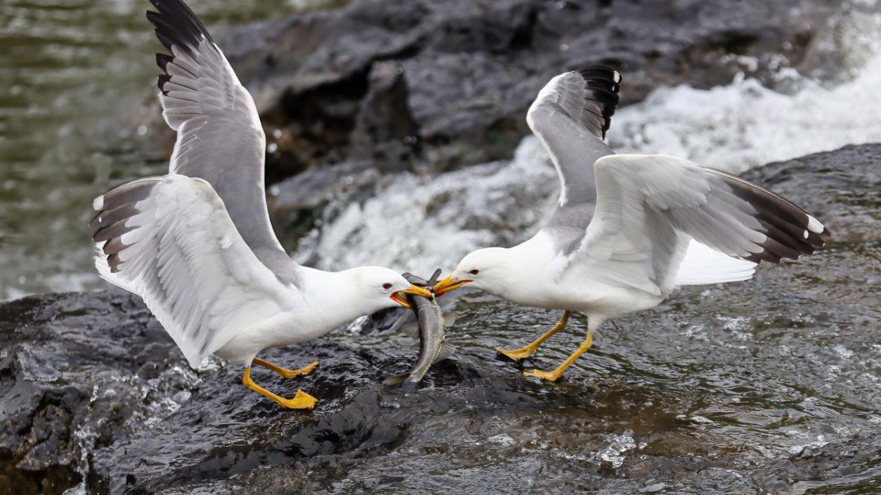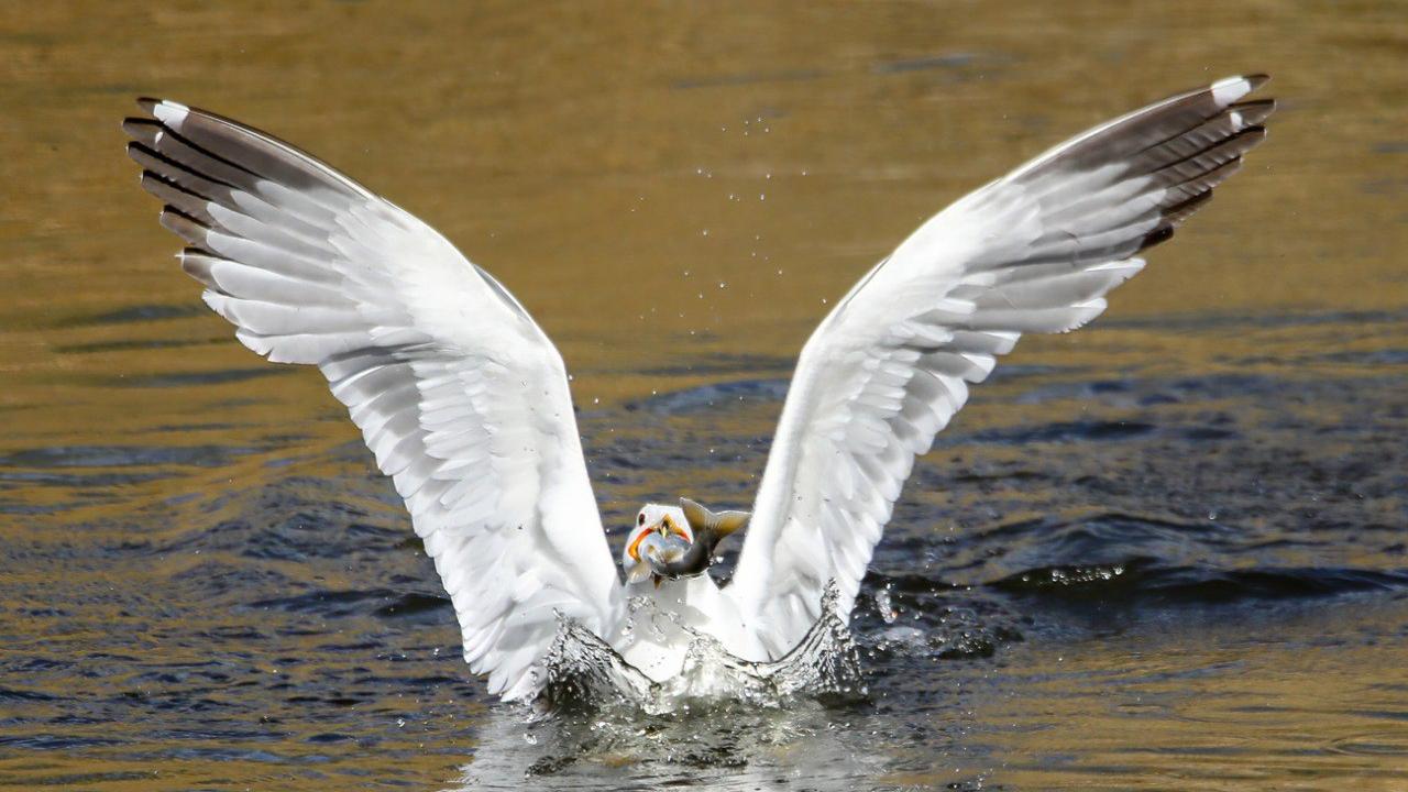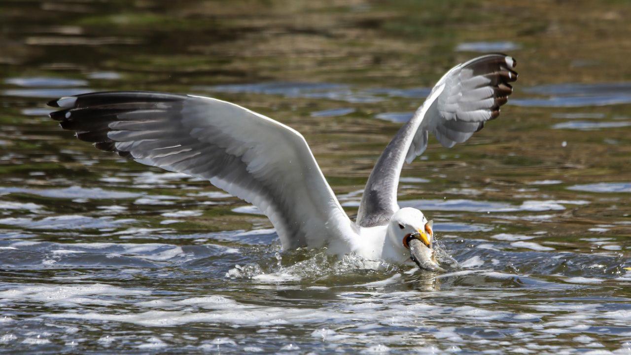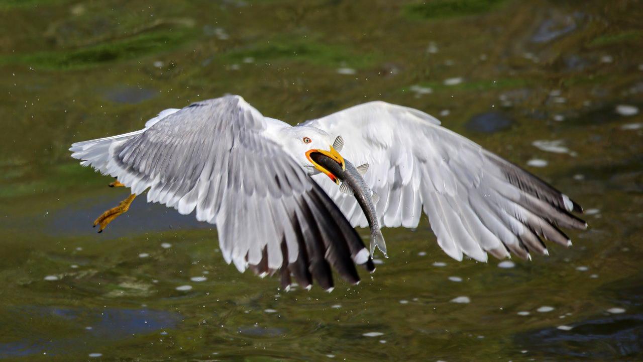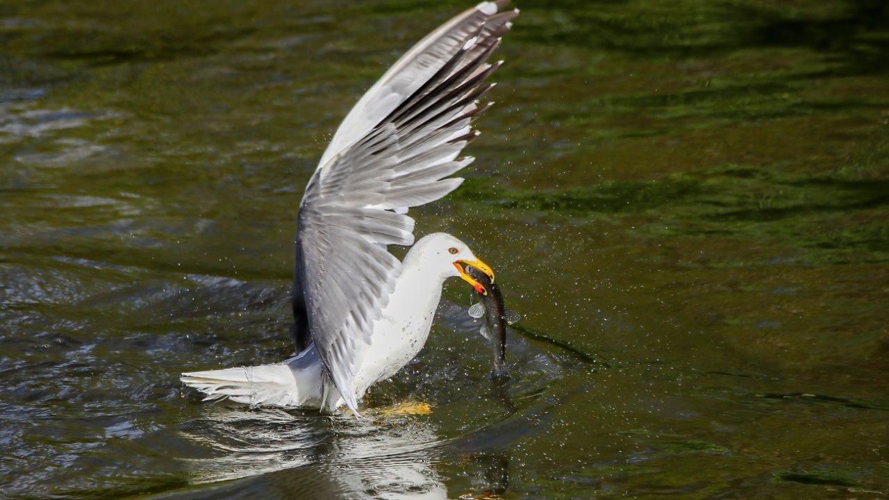Bölgedeki martılar da göç yolculuğundaki balıkları avlayarak besleniyor.